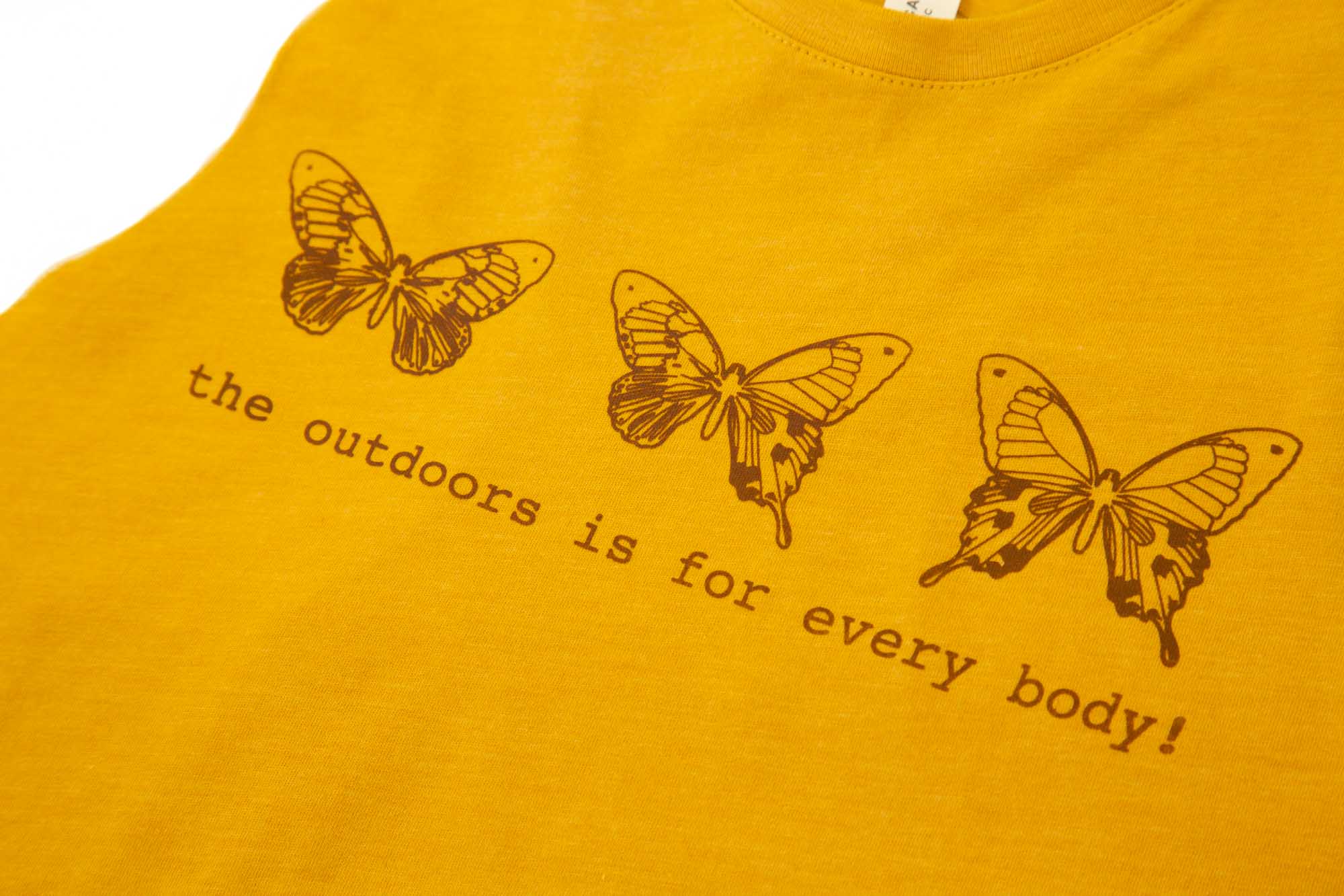 The design features a trio of Swallowtail Butterflies—female on the left, non-binary in the middle, and male on the right—reminding us that nature embraces all of us, just as we are.