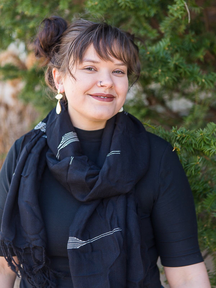 Our Farah Scarf can be paired with everything and anything. Our founder Joy has been wearing this black and white fair trade scarf non-stop for the last year when she met with this great artisan group! This scarf is handwoven by women in Egypt. It's ethically-produced and super comfortable-- a fair trade accessory you can be proud to wear!