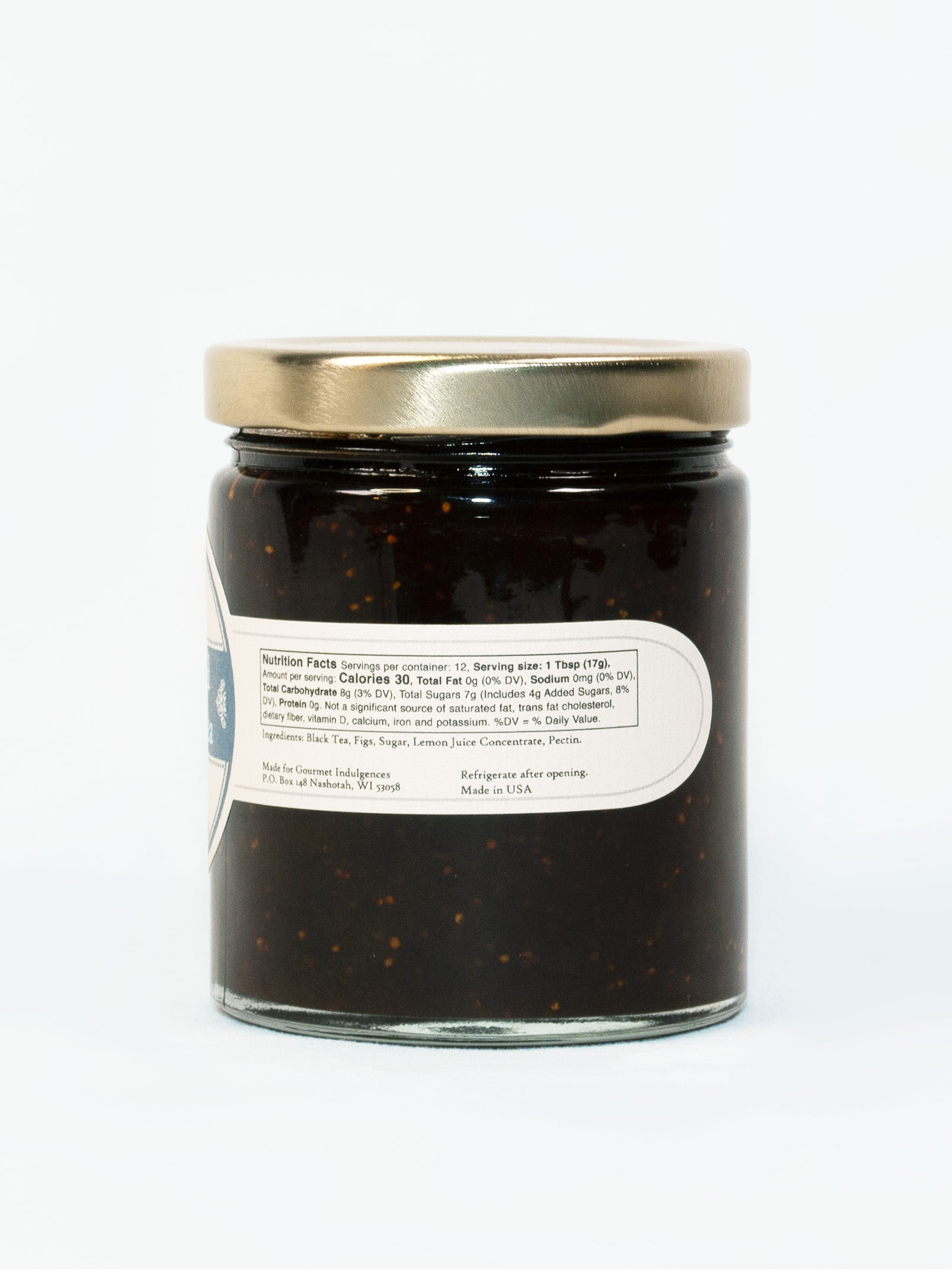 Ingredients: Black Tea (Water, Tea Leaves), Dried Figs, Cane Sugar, Lemon Juice and Pectin