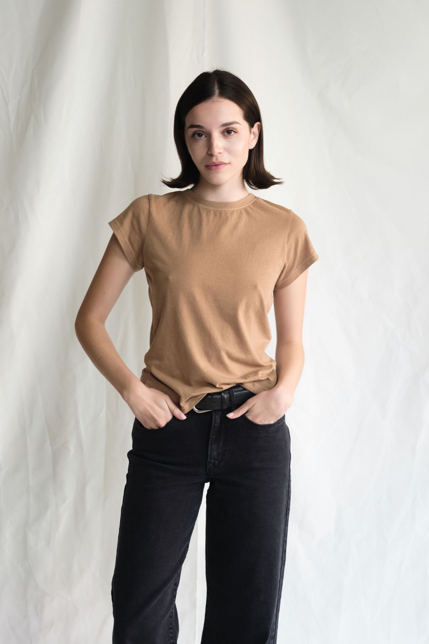 Meet your new everyday essential: the Fitted Baby Tee. This is the classic foundation piece designed for comfort, style, and effortless layering. We've perfected the fit to offer that beloved 'baby t-shirt' silhouette snug through the chest and waist- that’s both figure-flattering and comfortable for all-day wear. It features a timeless round neck and short sleeves, making it the perfect base layer or standalone top for any season.