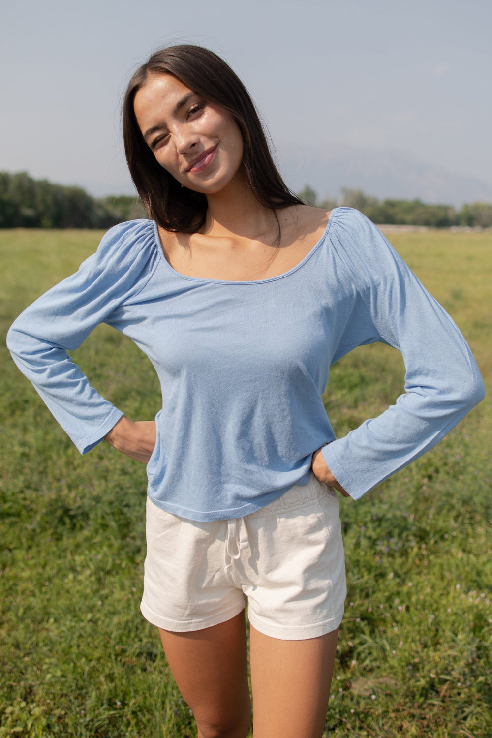 Let the sea breeze and flirty tease in in this ultra comfy top.