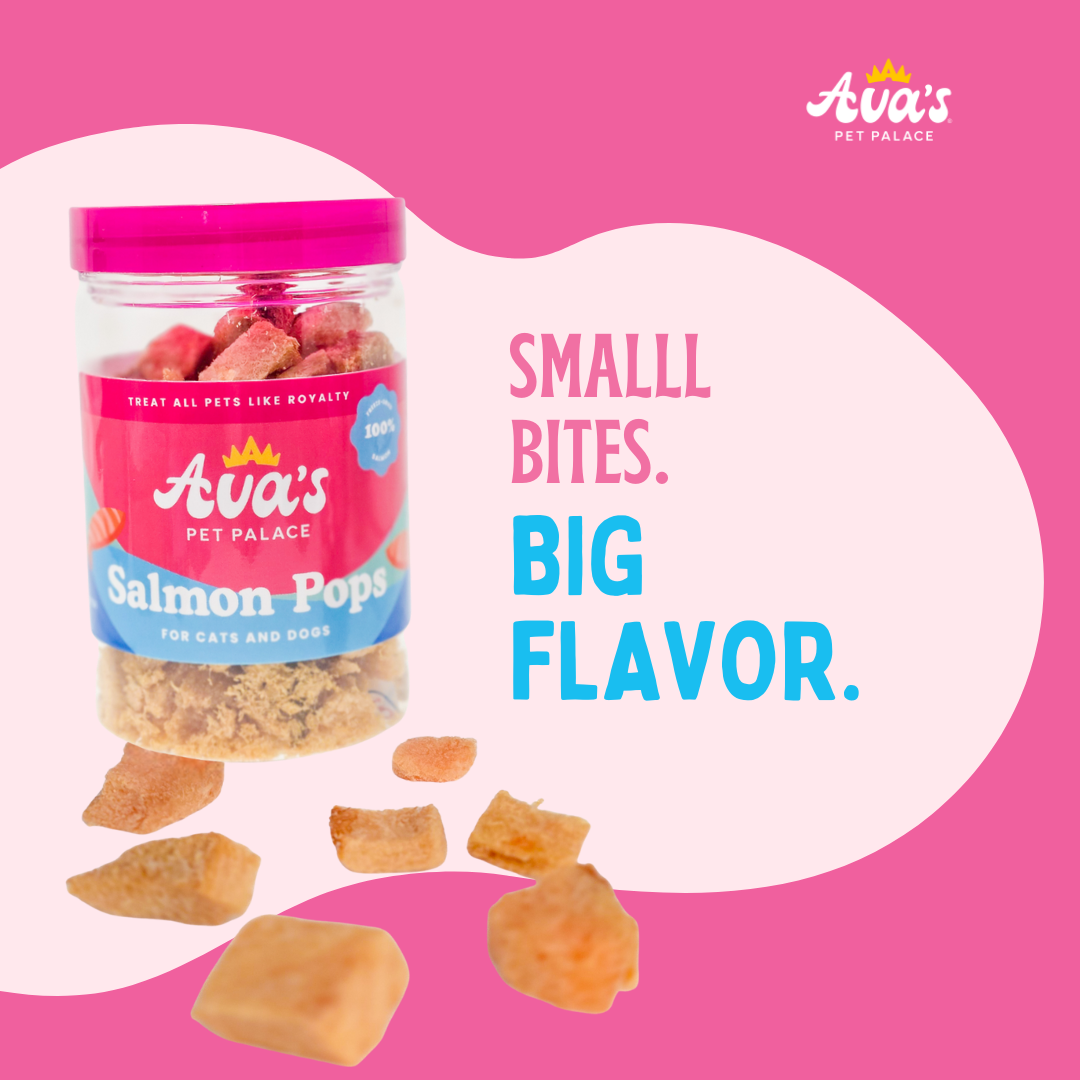 Salmon Pops are a rich, irresistible single-ingredient treat made from 100% freeze-dried salmon with the skin on. Packed with protein, omega fatty acids, and natural nutrients, these crunchy bites support skin, coat, heart, and overall wellness. With a texture cats and dogs love and a flavor that keeps them coming back, Salmon Pops make every snack time feel special.