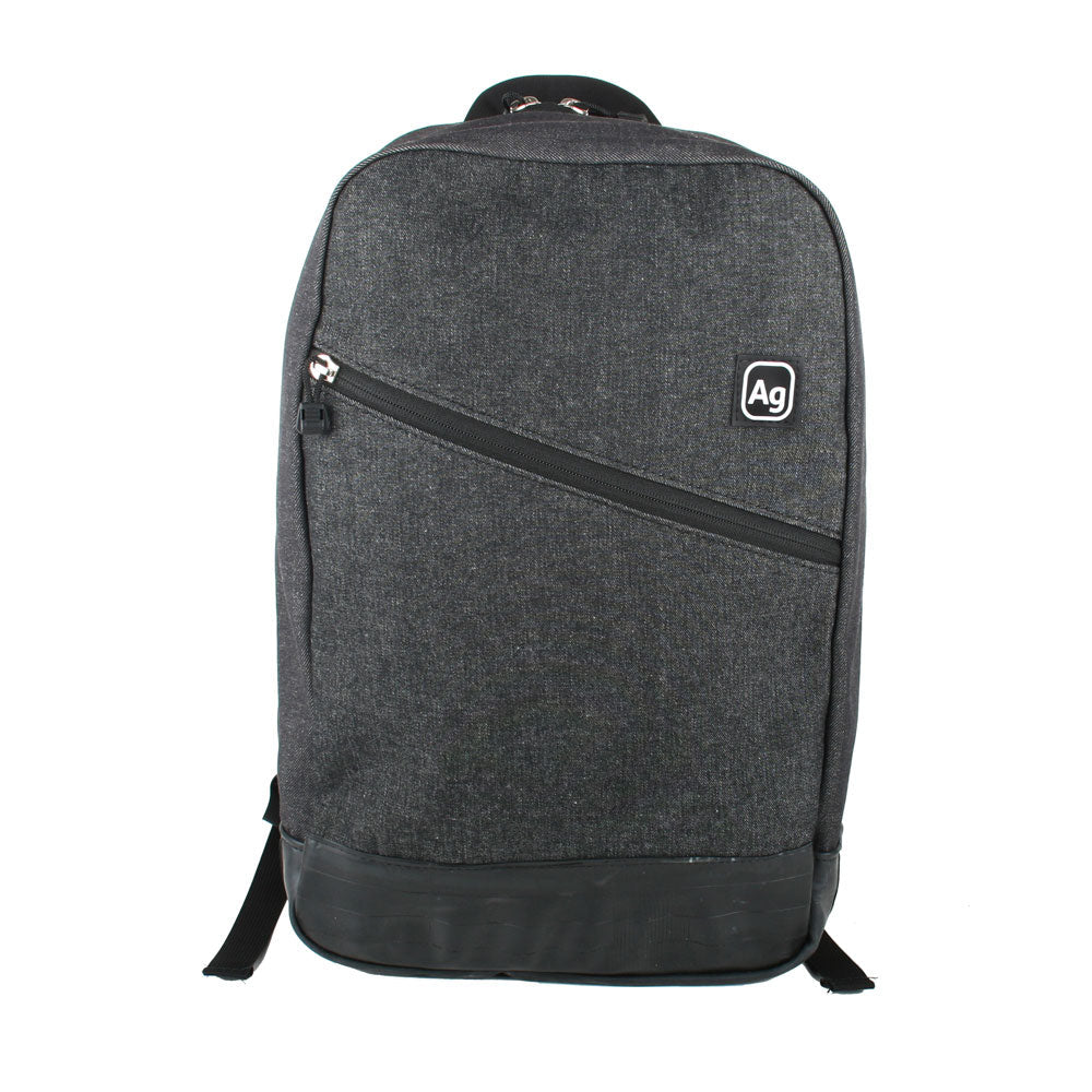 The Fremont Backpack is a go-to backpack perfect for everyday use or light travel. With a large main body zipper opening, it is easy to get at anything in your bag. The large outside pocket is perfect for storing smaller items that need to be easily accessible. Made from salvaged black jean denim and upcycled bicycle tubes in the USA.