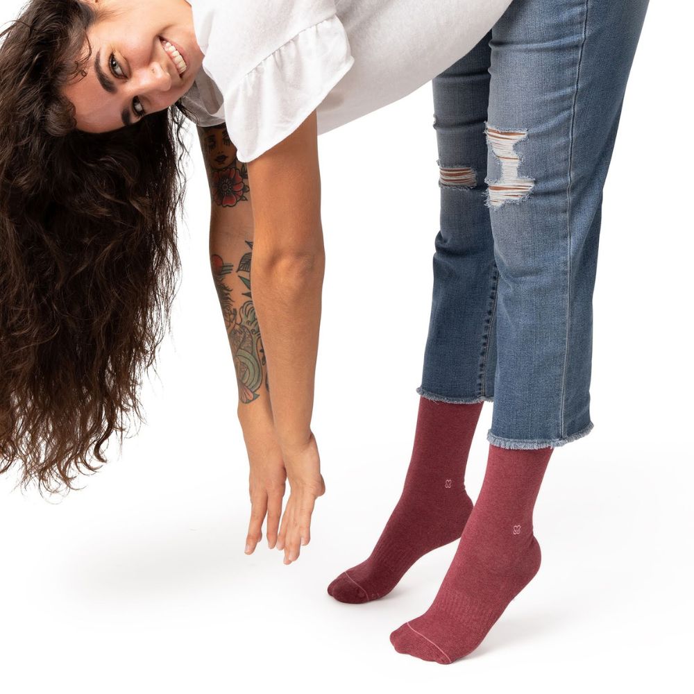 Three times the breast cancer support! This 3-pack features plum, pink, and cream socks with a heart embroidery plus extra arch support and padding for supreme comfort. Each pair supports Keep A Breast and their work to educate young people on breast cancer prevention.