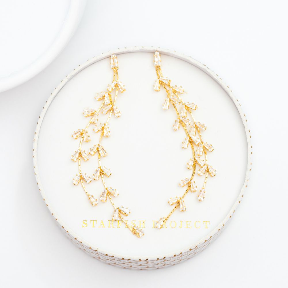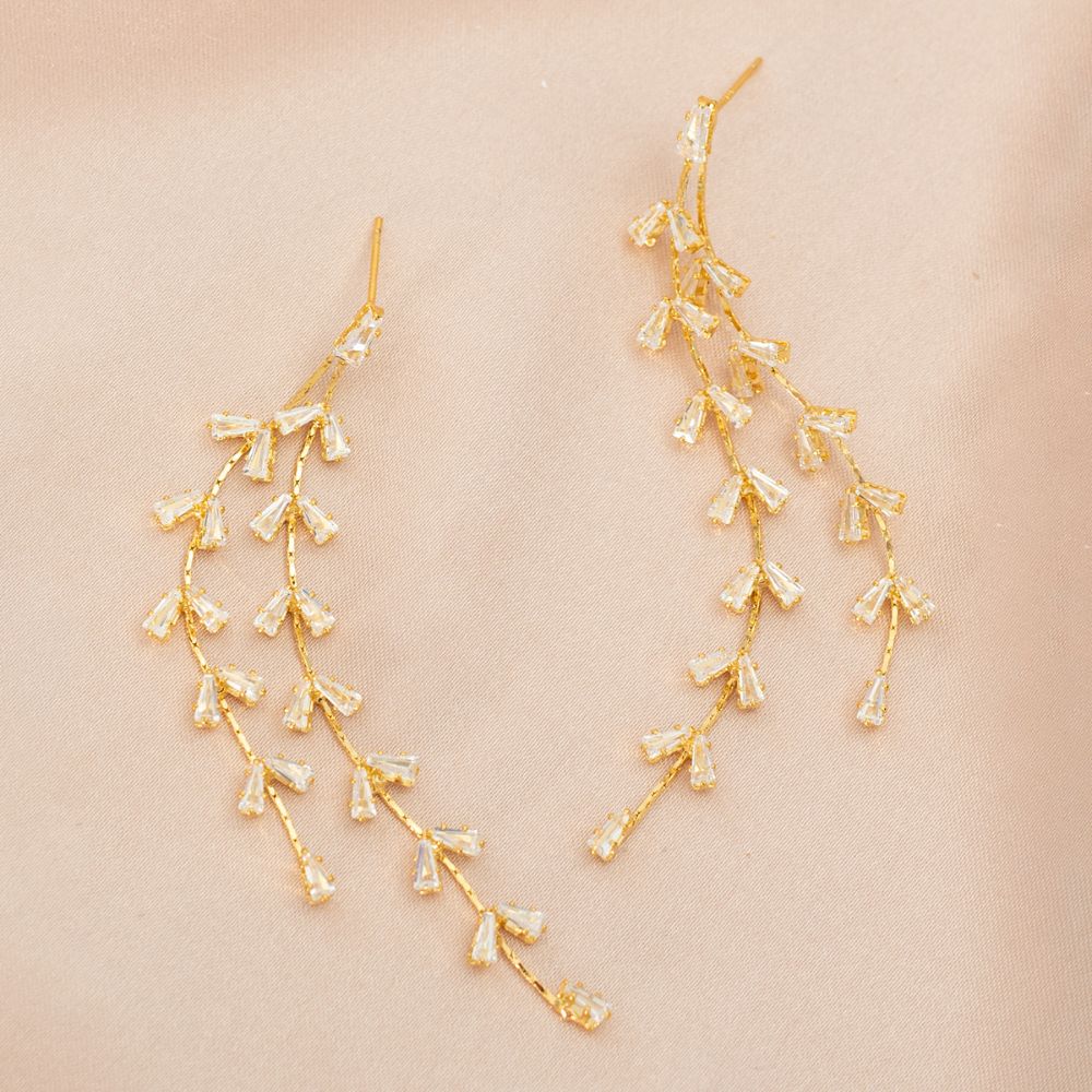 Embrace elegance with these lovely post earrings inspired by the delicate beauty of a weeping willow. They feature 14K plated gold adorned with shimmering zircon stones. Perfect for both formal events, weddings and New Year's! Elevate any outfit with its timeless charm.