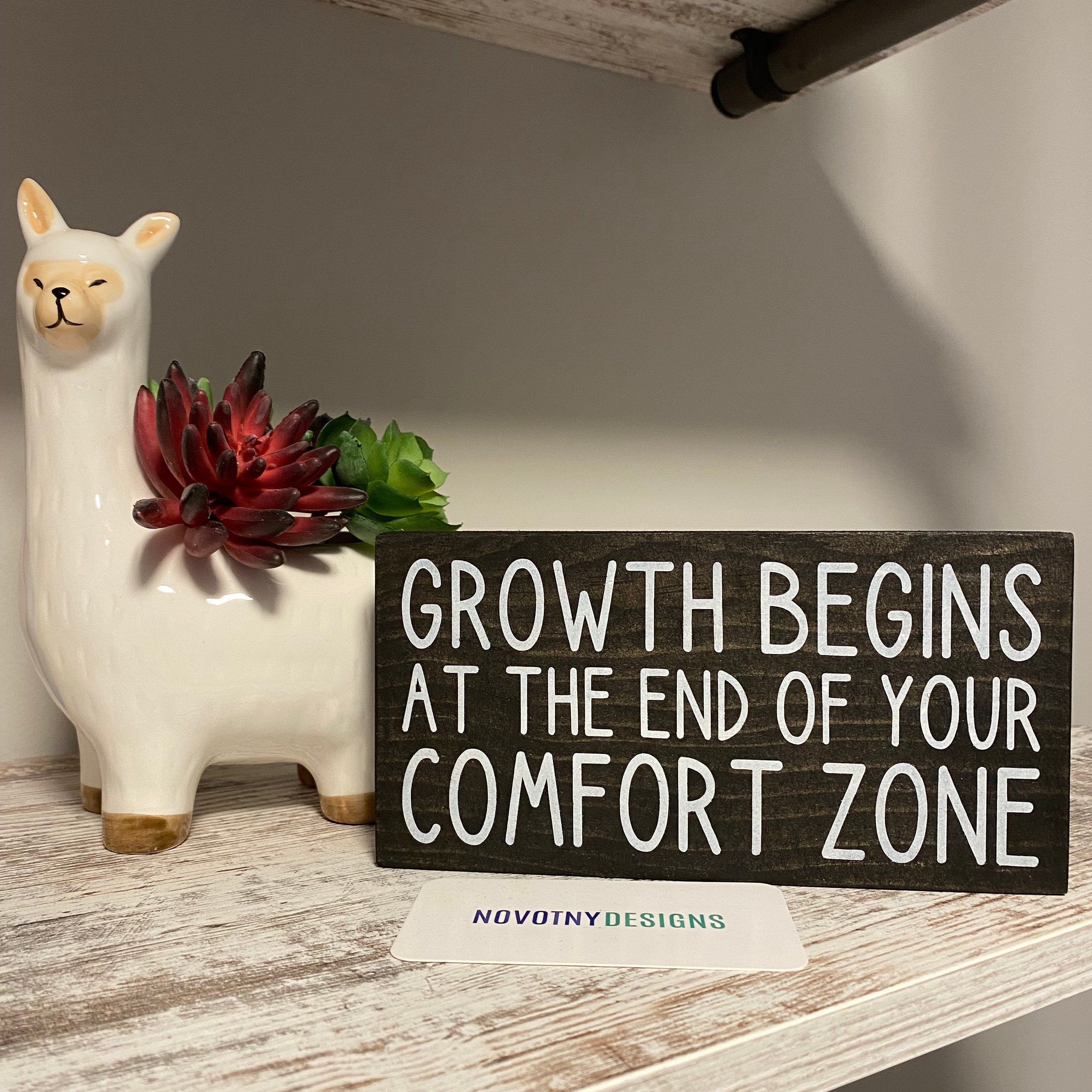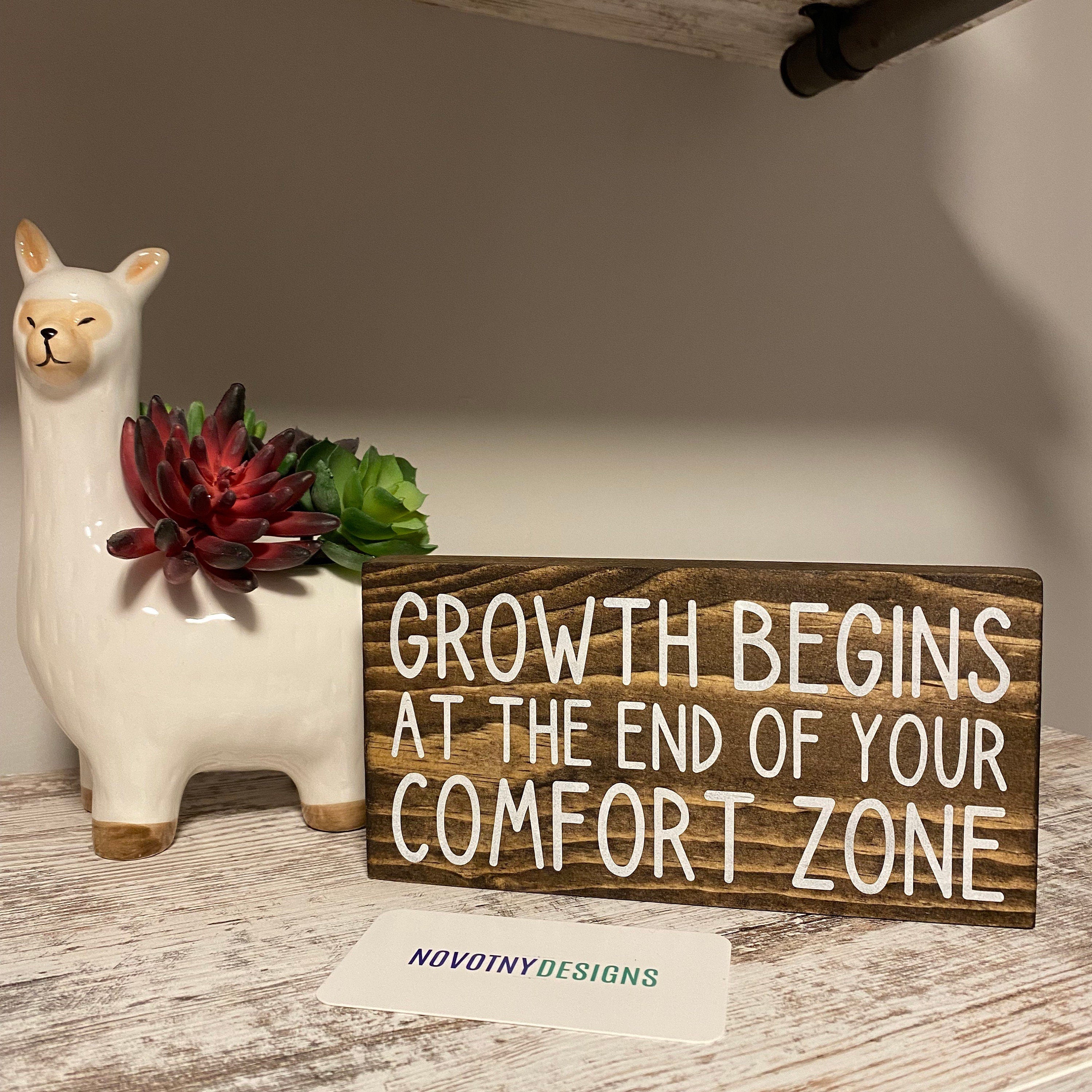 Grow to new heights with this, "Growth Begins at the End of Your Comfort Zone," wooden sign. Its inspiring message encourages you to break through boundaries and challenges to unlock new potential. Push yourself out of your comfort zone and reach for success.
