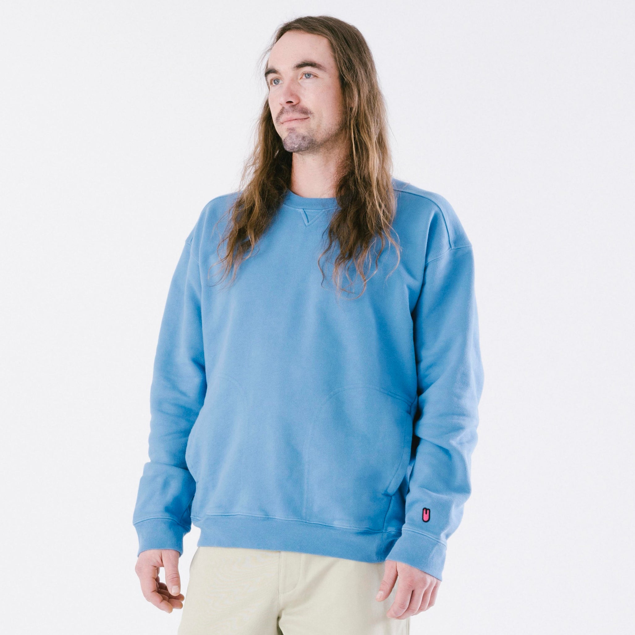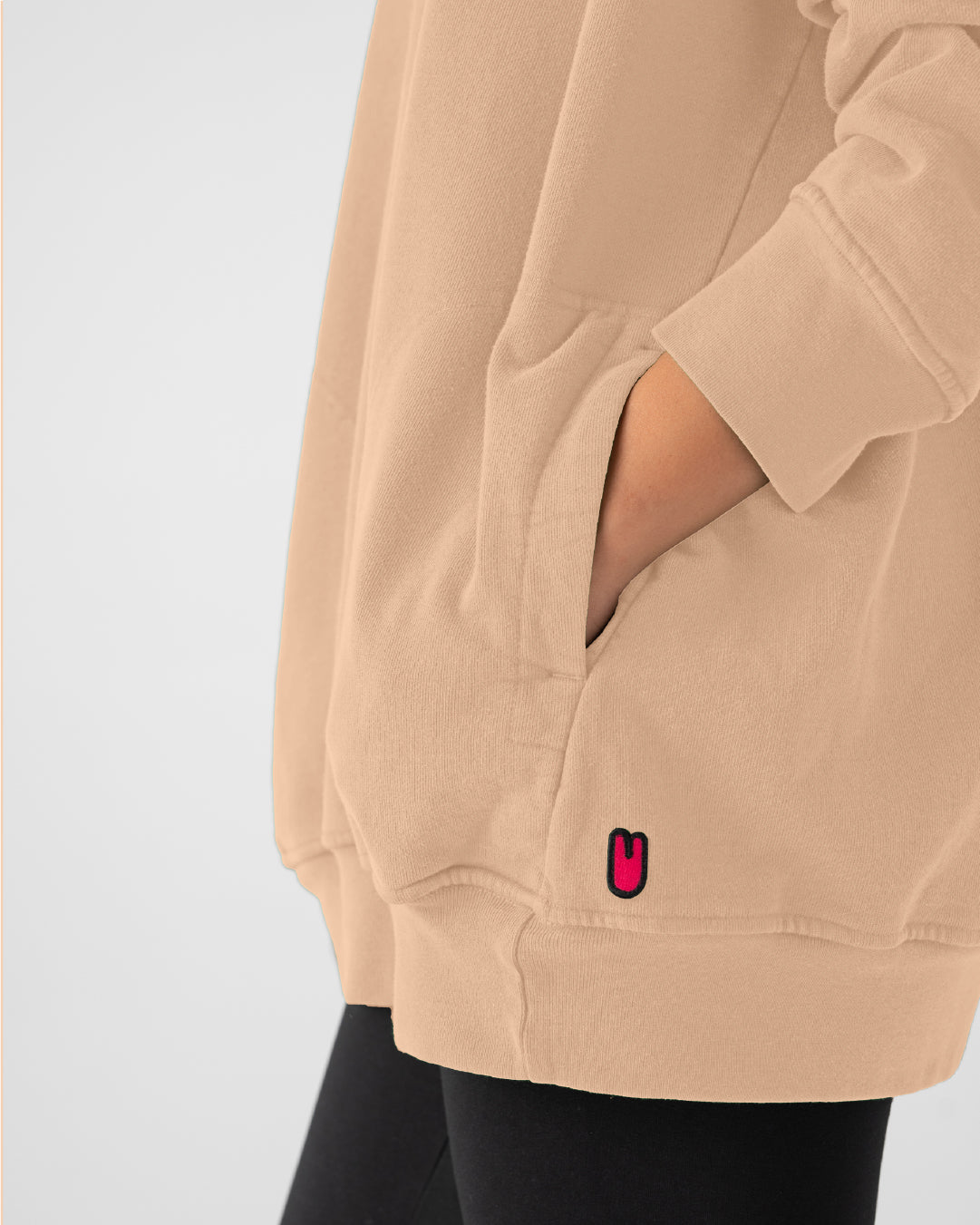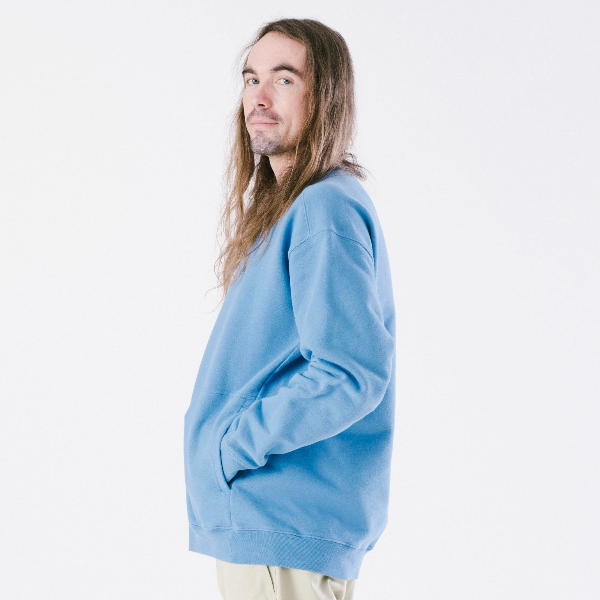 100% cotton, just like the old days, there are no plastics or petro-chemicals here. This unisex classic is cut with a super-cozy “O” shape body and front pockets to keep your hands cozy too!