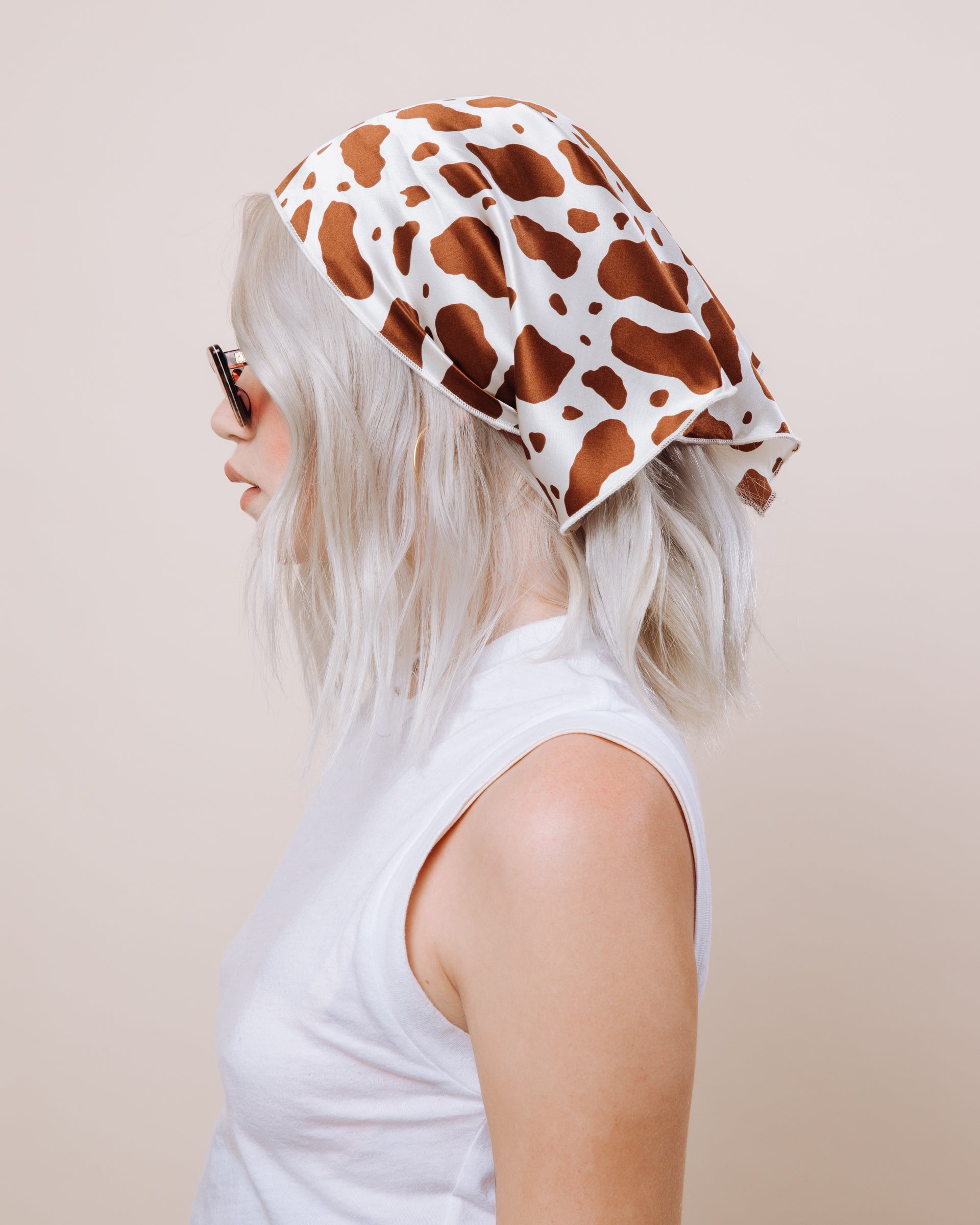 Super versatile, super fun! This style delivers in so many ways! It's not sewn together so you get a mini scrunchie and a scarf that can be worn bandana style, hair scarf style, as a handbag tie, the possibilities are endless! And of course, the way it will be prepared for you tied up in our long scrunchie tie style!