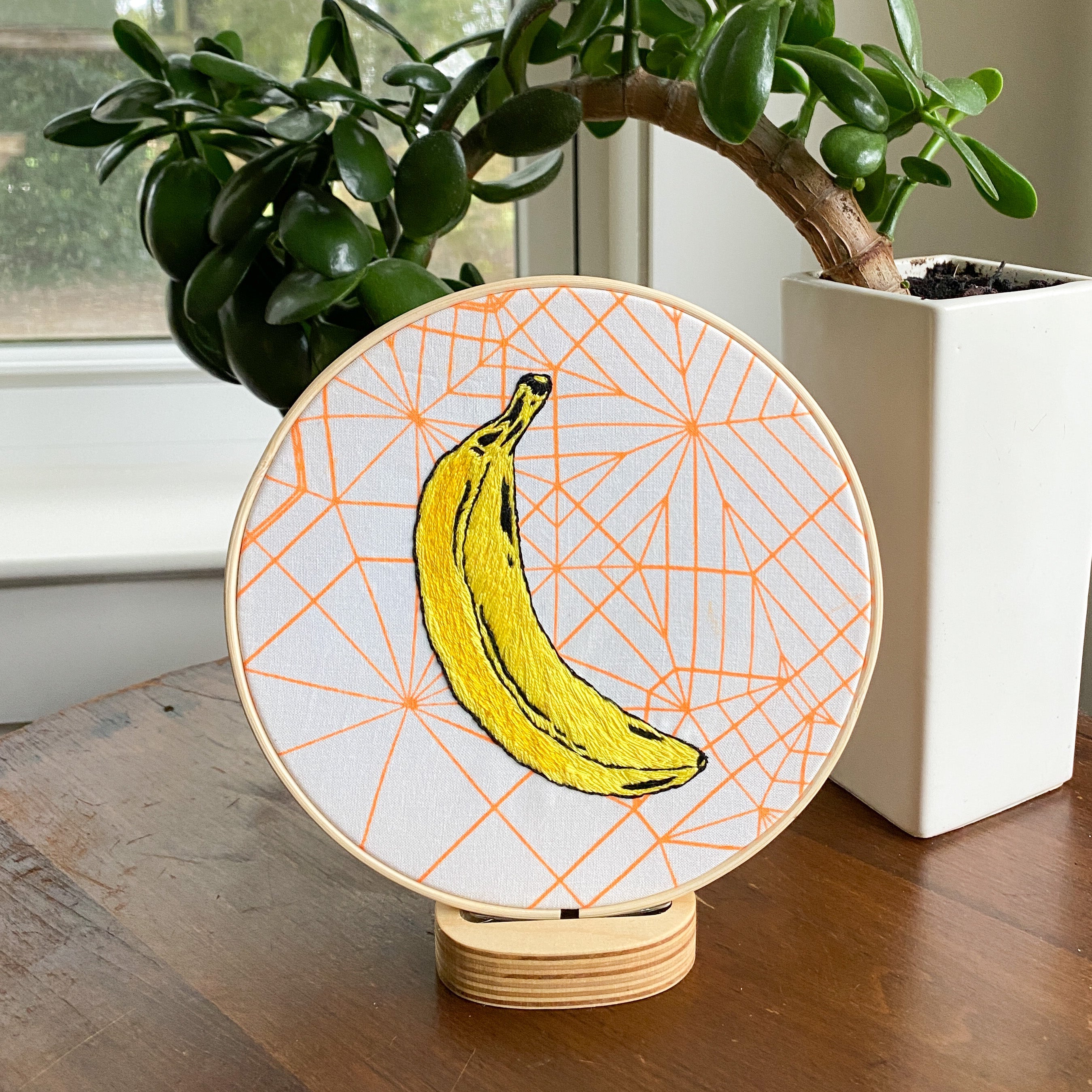 This clever little gadget will help you display your hoop on a shelf, table, or windowsill. Each wooden base has a perfectly sized recess to hold your hoop and hide the screw mechanism.
