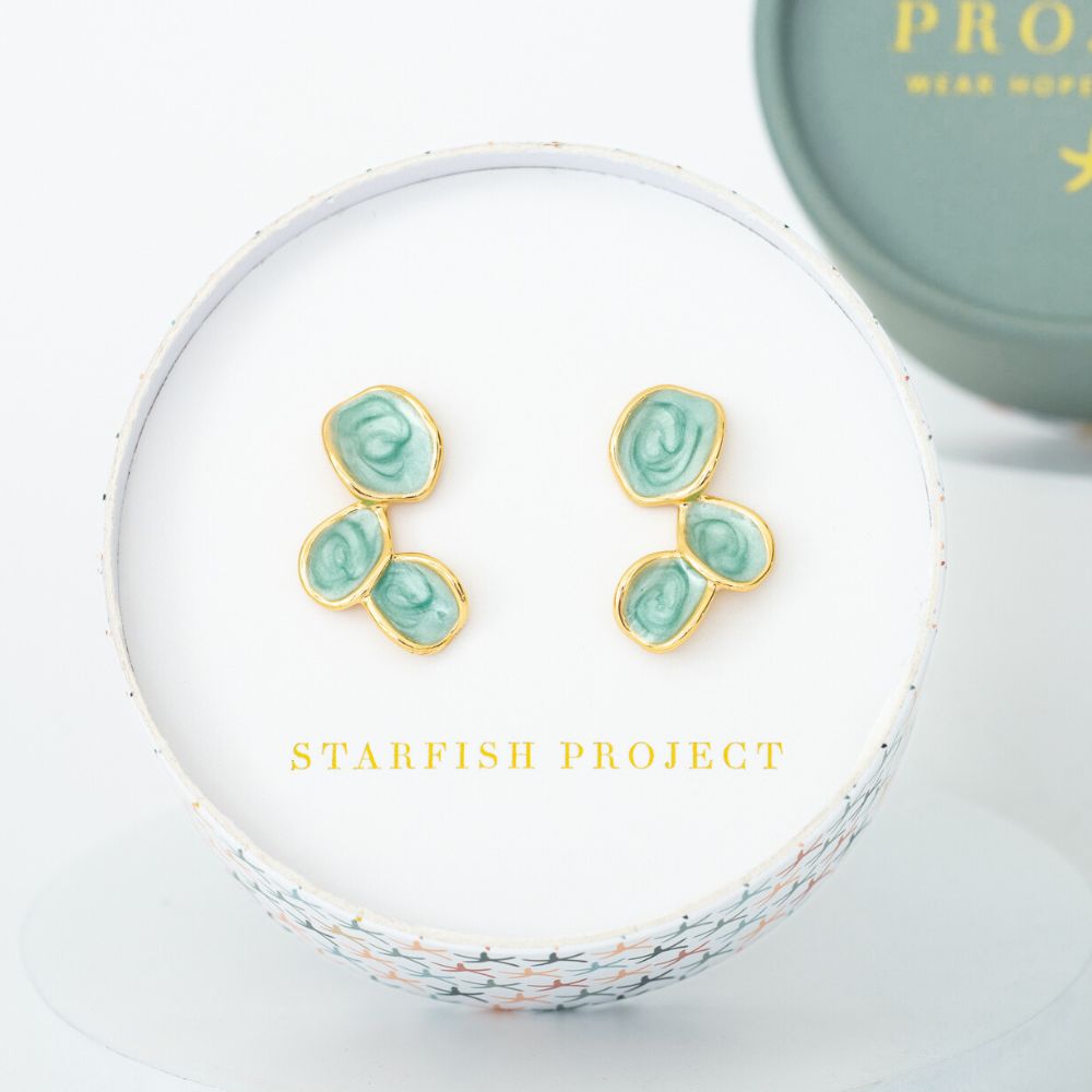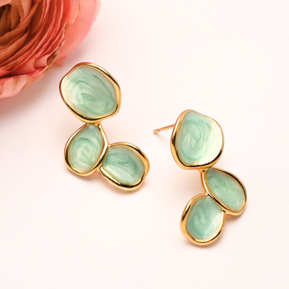 The dreamy mint enamel swirls within 14K gold-plated frames, reflecting the beauty of hope in motion.