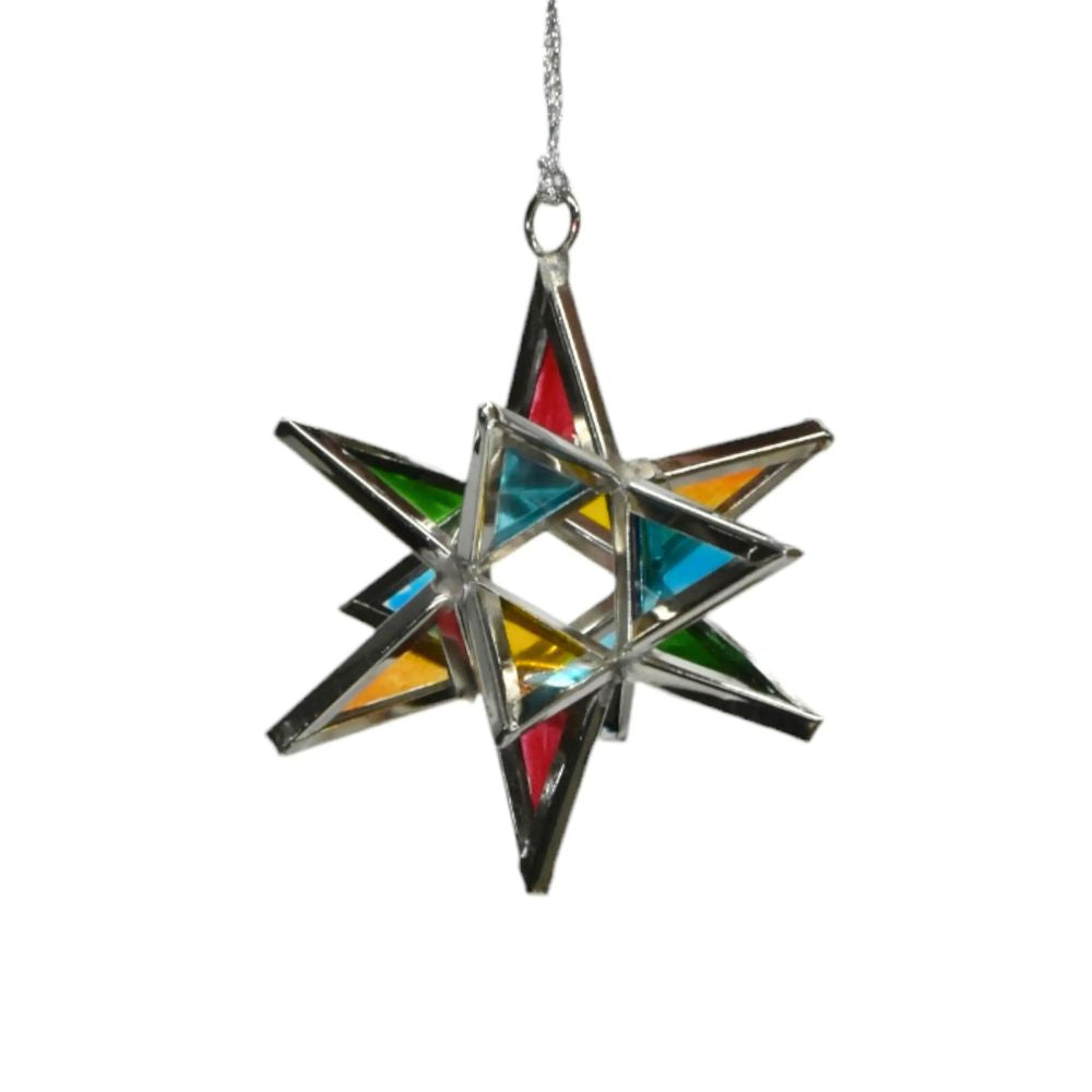 - Handcrafted iron and painted glass multicolor star ornament from India