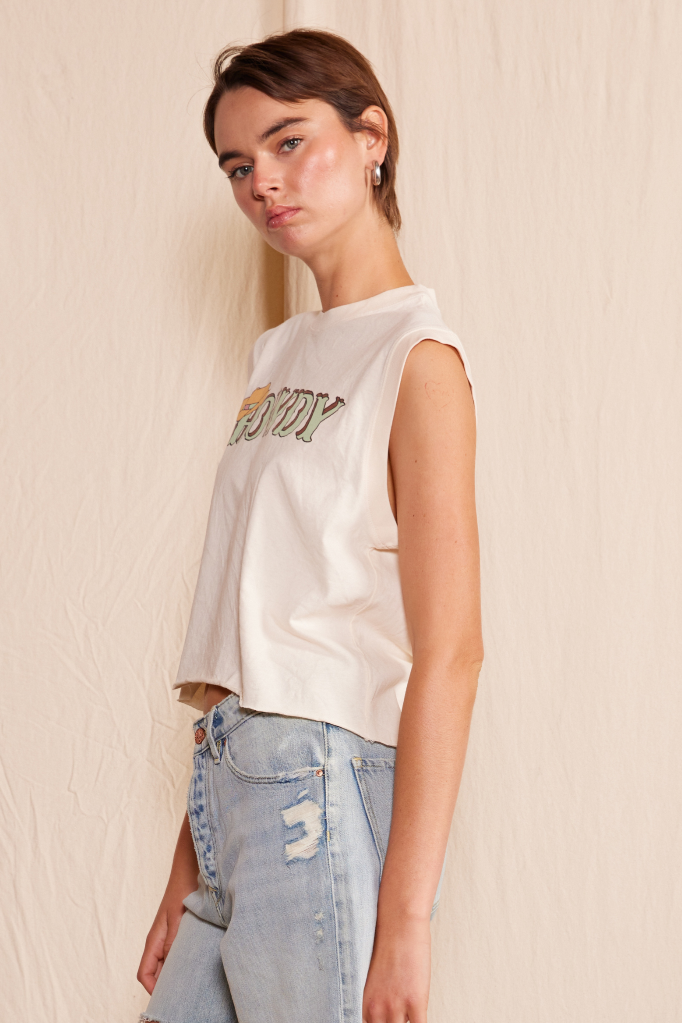 Welcome summer with the "Howdy" Tank! This muscle tank features a playful "Howdy" print and cowboy-inspired style, made from 100% organic cotton for ultimate comfort and sustainability. Stay cool, stylish, and environmentally-friendly all season long. Giddy up!