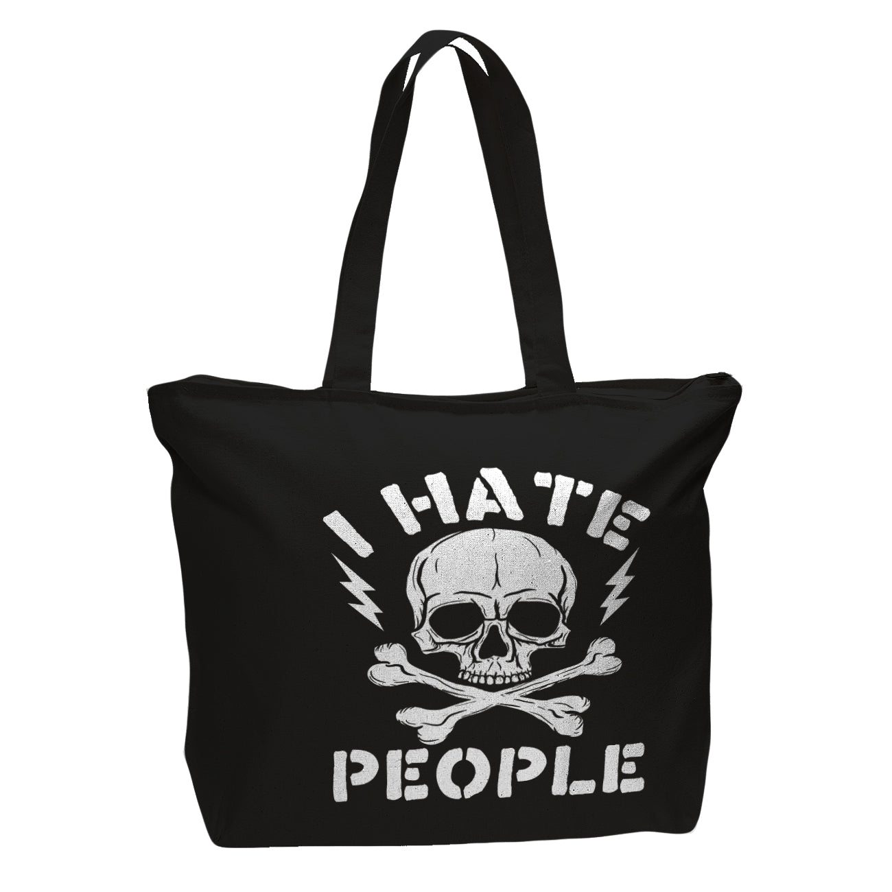 Made from 12oz. soft and sturdy cotton canvas. Measures approximately 20 inches wide, 15 inches tall, and with a 5 inch bottom gusset for ample storage capacity. The handles are about 23 inches long making for a 10 inch drop. It has a zipper on the main compartment as well as a small zippered interior pocket for small valuables.