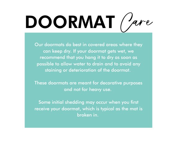 Caring for our doormats is a breeze! Simply give them a gentle shake to remove any dirt or debris. While spot treatment is suitable, it's advisable to avoid vigorous scrubbing or exposing the mat to excessive water or cleaning solutions, as this may lead to discoloration or damage to the painted design. Please note that our doormats are designed primarily for decorative purposes and are not intended for heavy foot traffic. To preserve the longevity of the design, we recommend keeping your doormat in a dry and sheltered area.