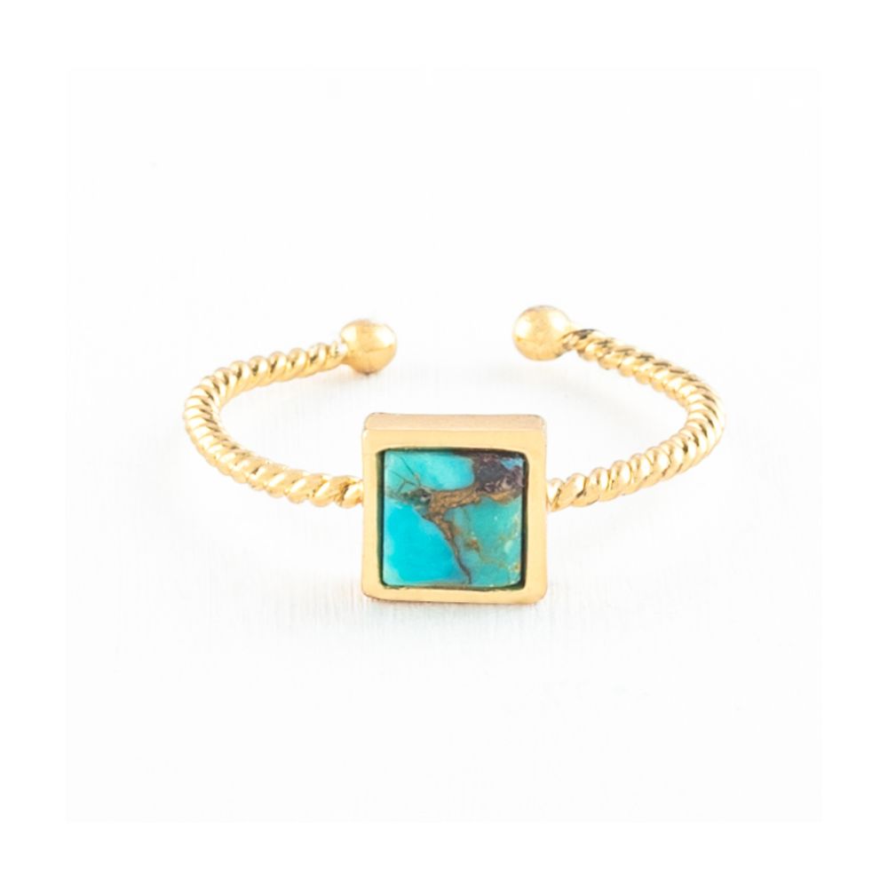 The timeless turquoise and gold of this adjustable square ring make it a great addition to your wardrobe or a wonderful gift.