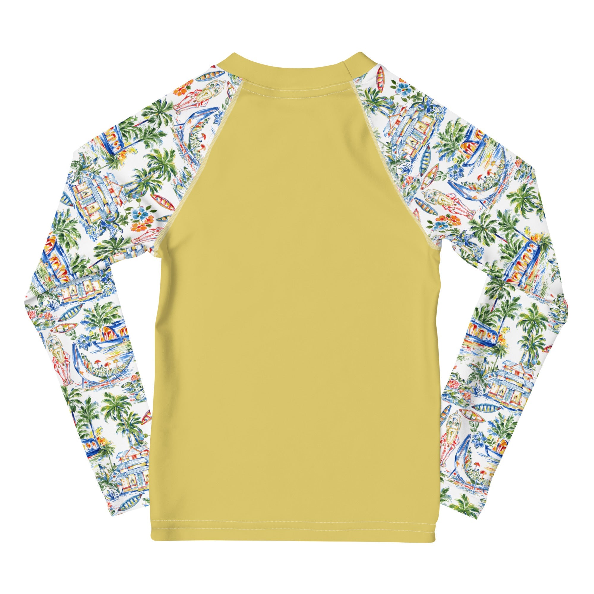 Protect the little ones from the elements with this colorful kids rash guard. Its sun-protective fabric and long body and sleeves make it perfect for running around on the beach, or just being active indoors.