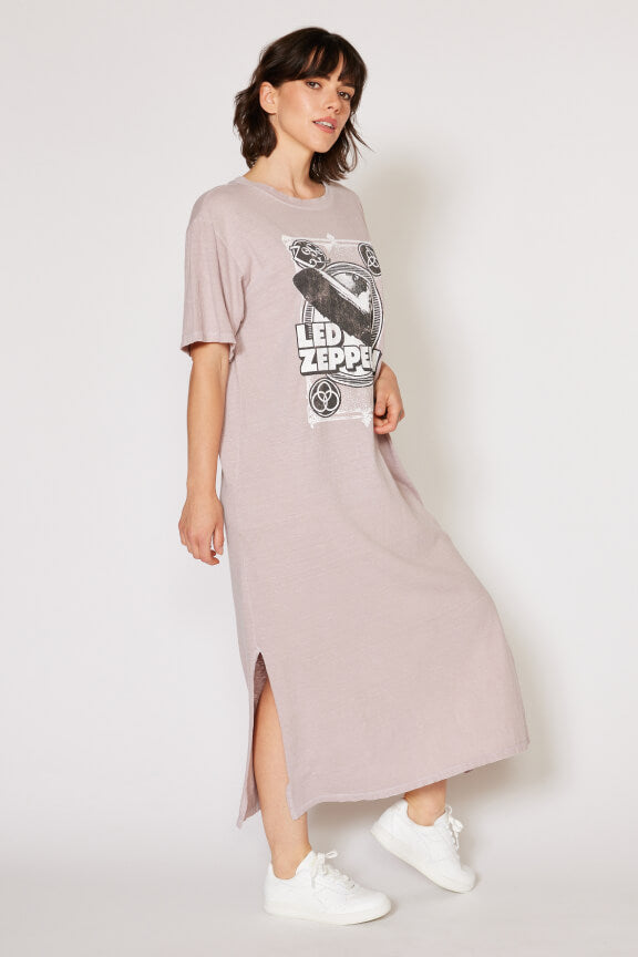 Crafted with care from 100% cotton material that's as gentle on the planet as it is on your skin. The vintage lavender color isn't just any dye; it's a low-impact wonder, giving you that washed-out concert tee vibe without the guilt. Imagine the spirit of Led Zeppelin, woven into the fabric of a dress that's as ethereal as "Stairway to Heaven" itself. It's comfort meeting classic rock, a piece that doesn’t just drape you in fabric but cloaks you in history. Made for those who want their wardrobe to whisper tales of epic guitar solos and ethically-made elegance, this dress is a love letter to the golden age of music and modern-day eco-consciousness. So rock it out to the sound of "Whole Lotta Love" or float through your day with "Going to California"—this dress hits all the right notes.