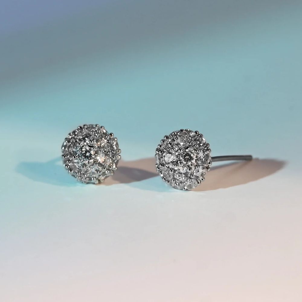 Shimmering with timeless elegance, the Lustre Blossom Studs bring a touch of brilliance to every moment. Each platinum stud earring is crafted into a delicate dome of luminous zircon stones, blooming with radiance from every angle.