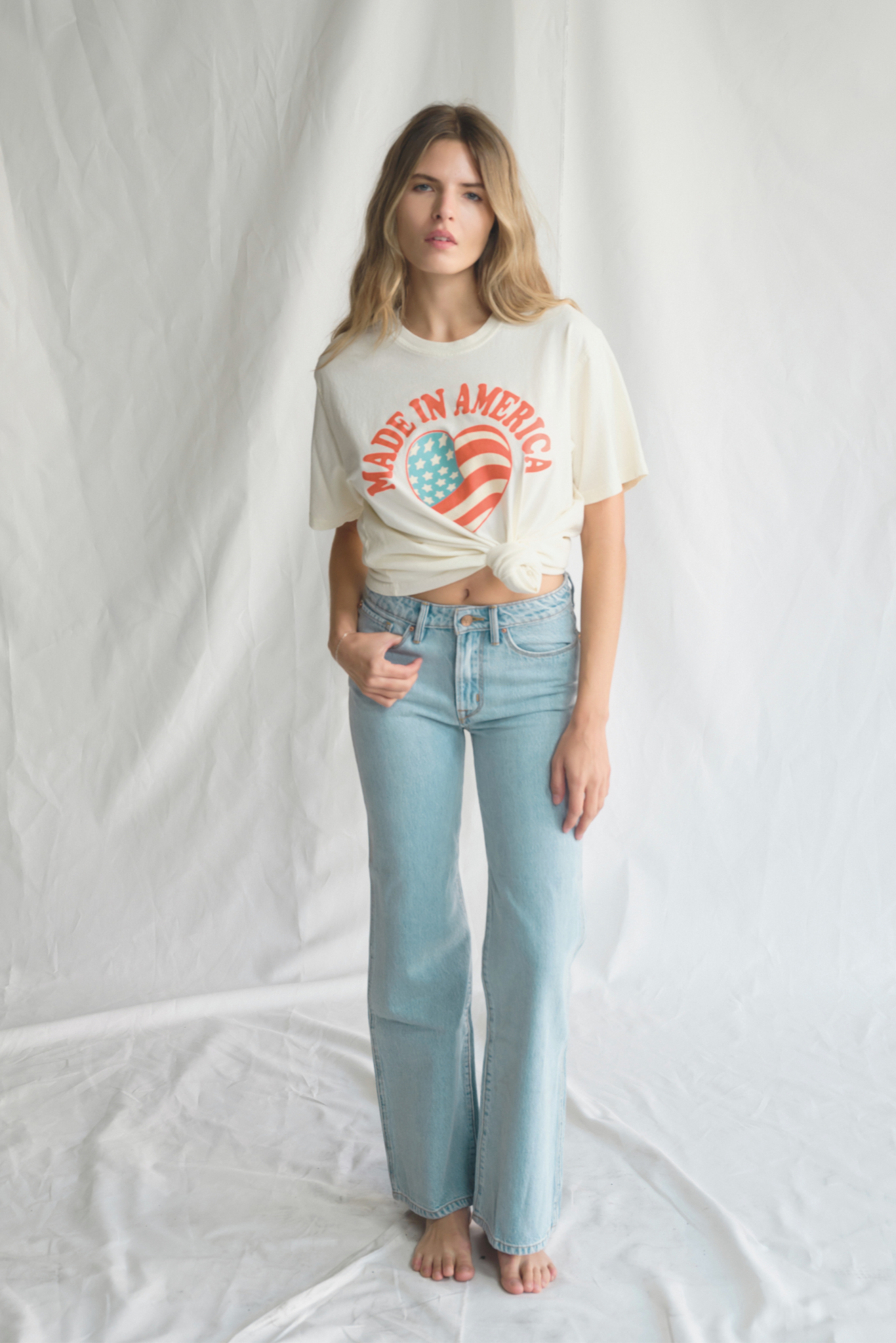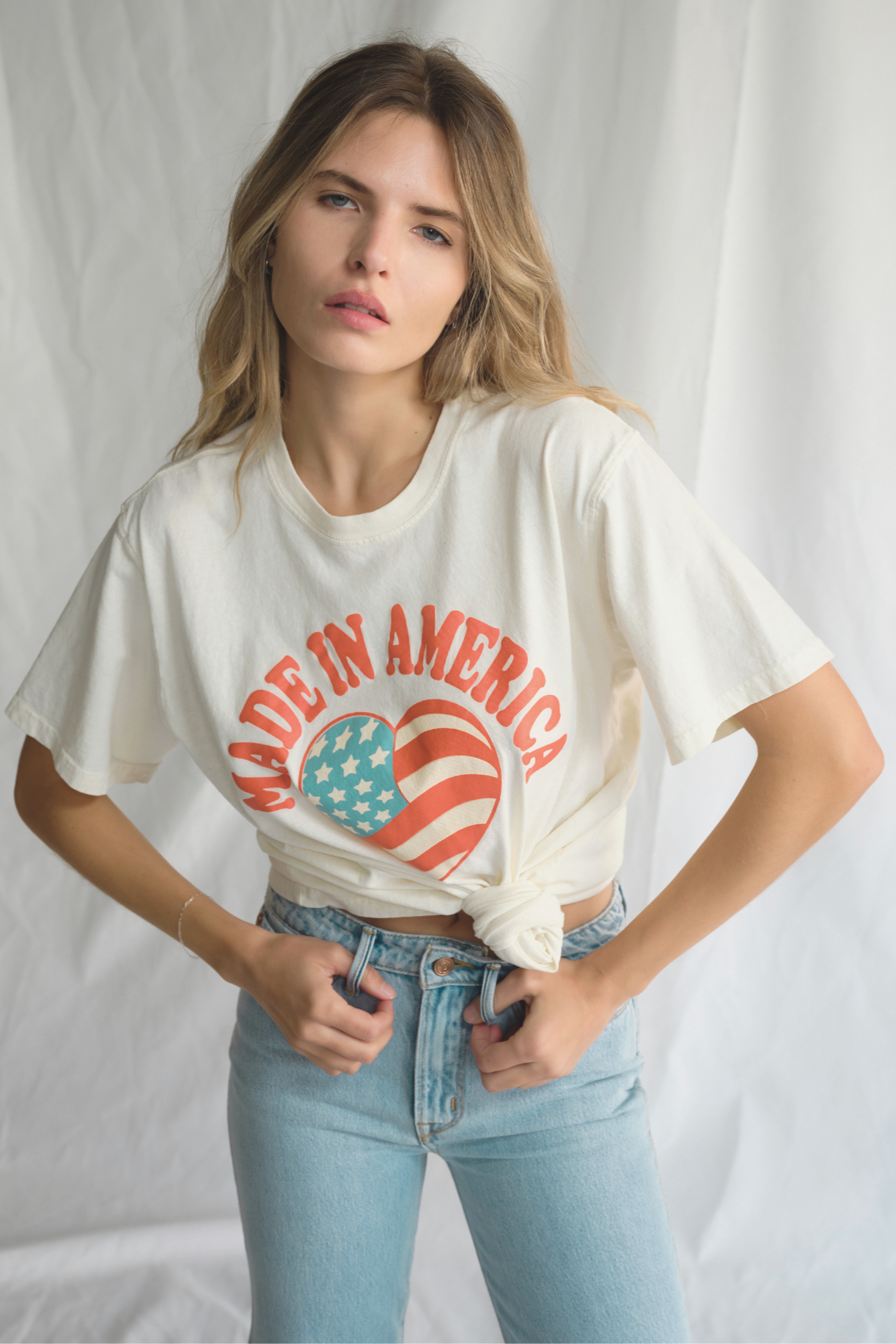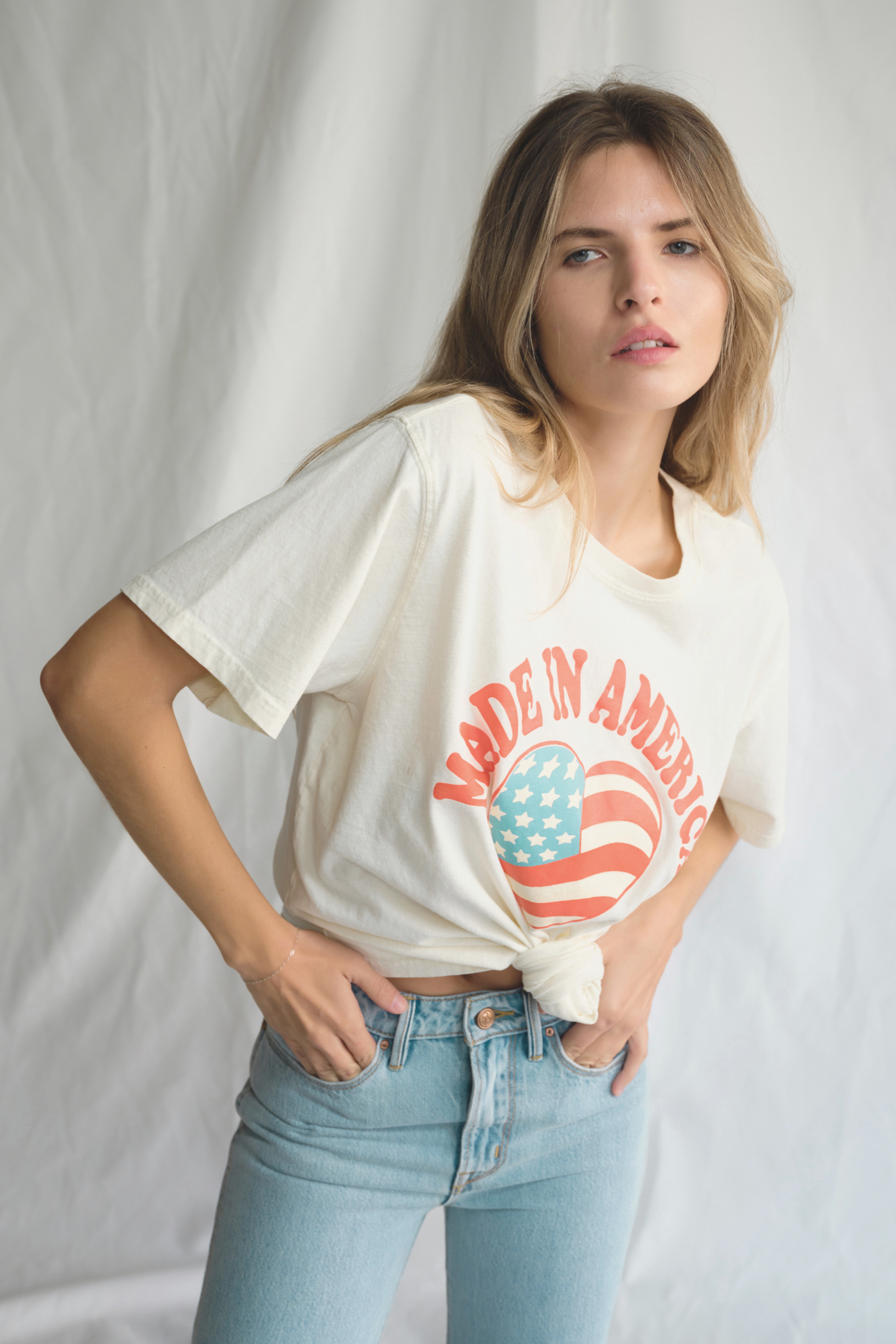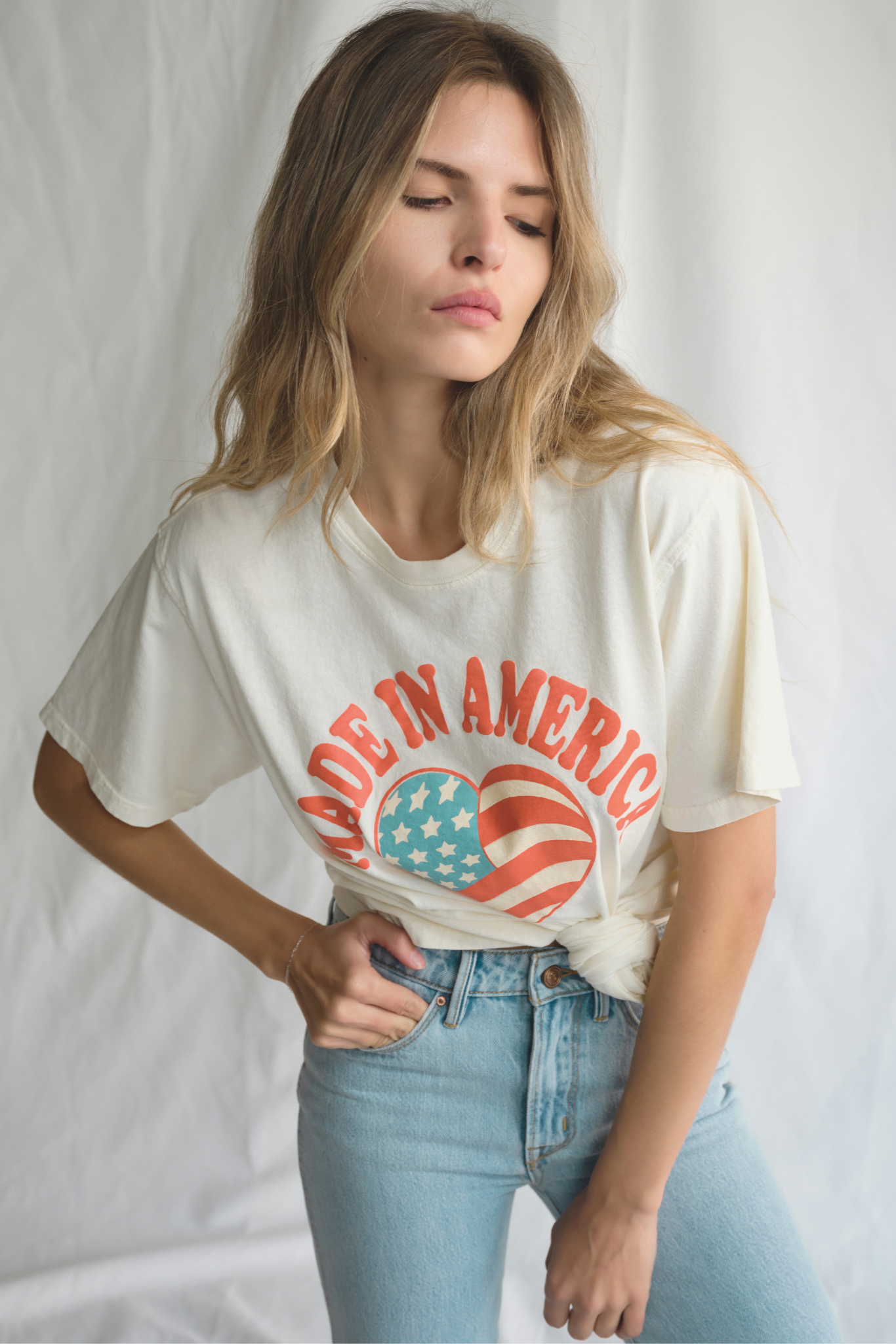 Born from the heart of American craftsmanship, this exquisite vanilla-colored garment is more than just a piece of clothing – it's a testament to unwavering quality and heartfelt dedication. Crafted from 100% pure, premium cotton, its soft, natural hue speaks of enduring comfort and timeless style. Proudly emblazoned with the powerful declaration, "Made in America with Love," each stitch embodies the passion of skilled hands and the spirit of a nation that builds with integrity. This isn't just fabric; it's a wearable embrace of American pride, a symbol of the enduring legacy of our workers, and a warm, tangible expression of love woven into every fiber.