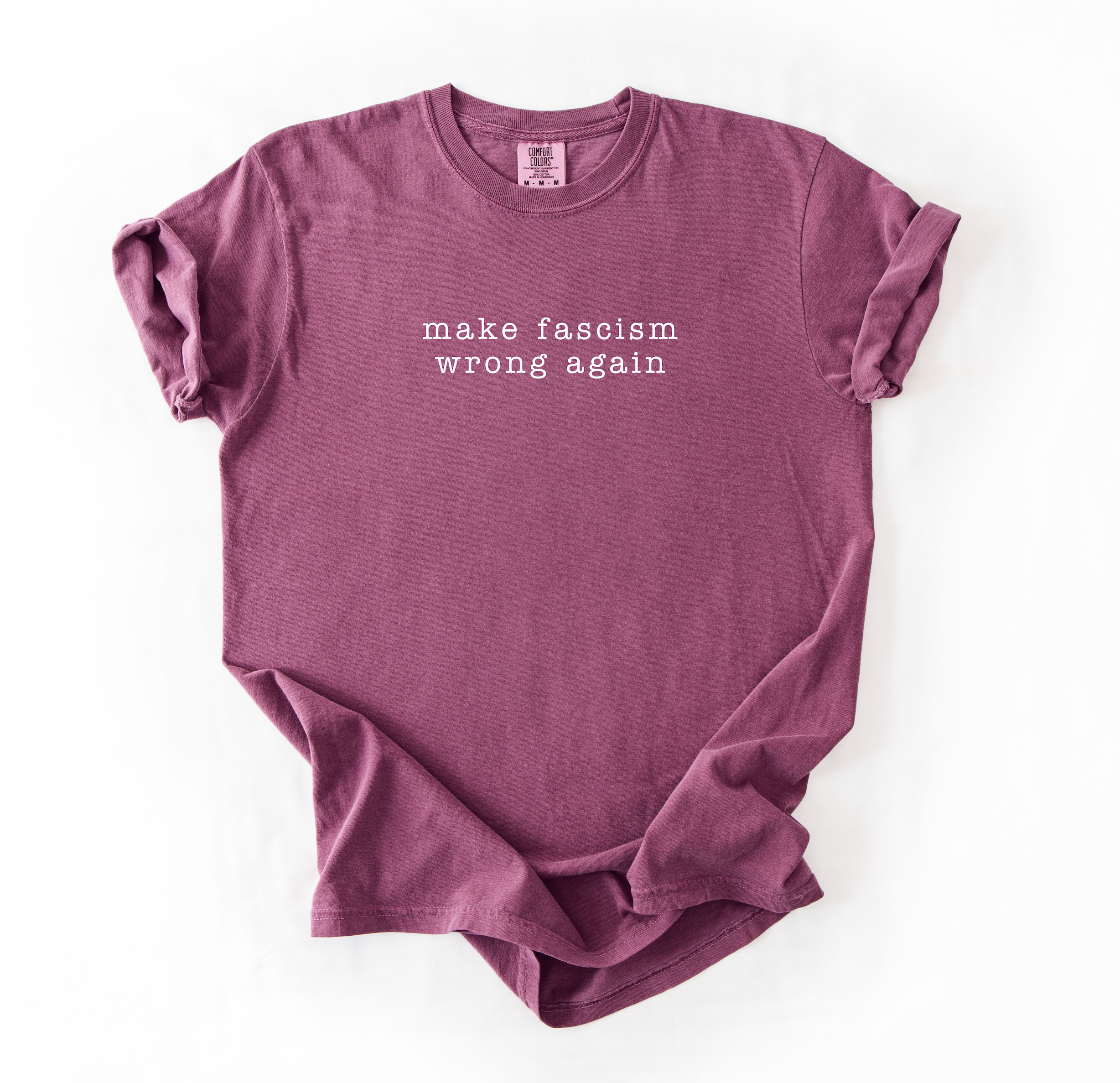 Our “Make Fascism Wrong Again” shirt delivers a powerful message in a simple, understated design that speaks volumes.