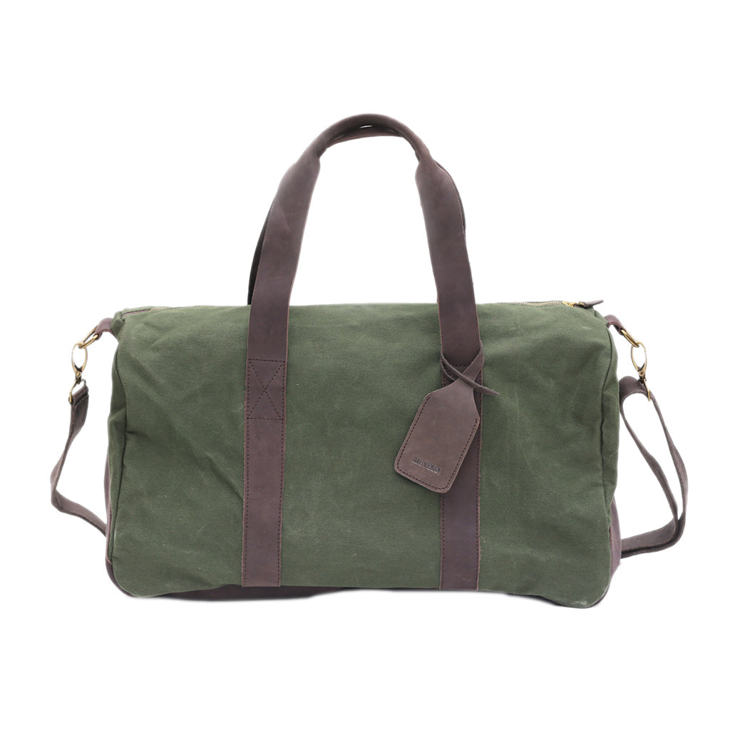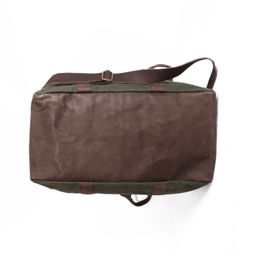 - Materials: Canvas, natural leather + hand cast brass buckles