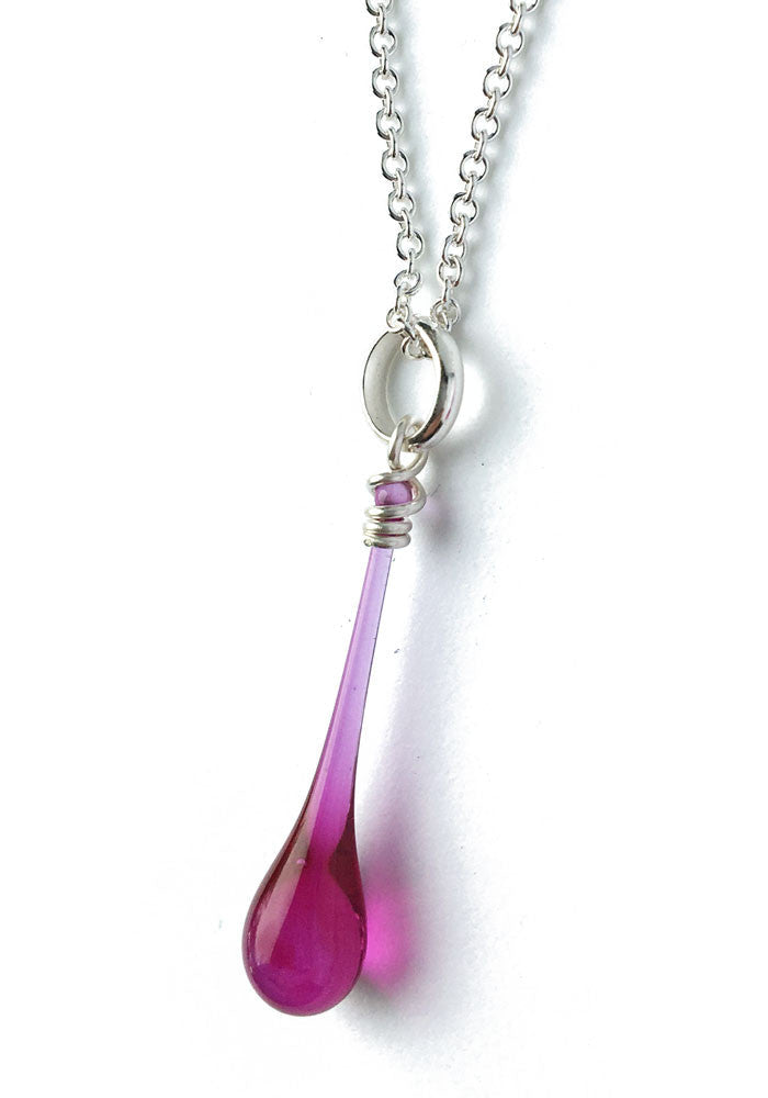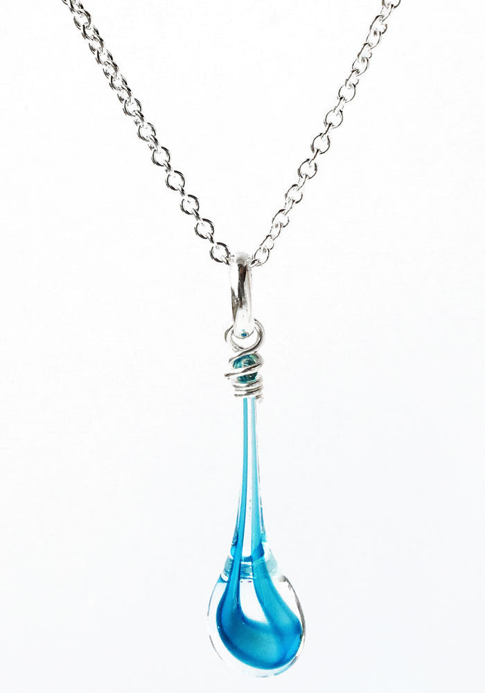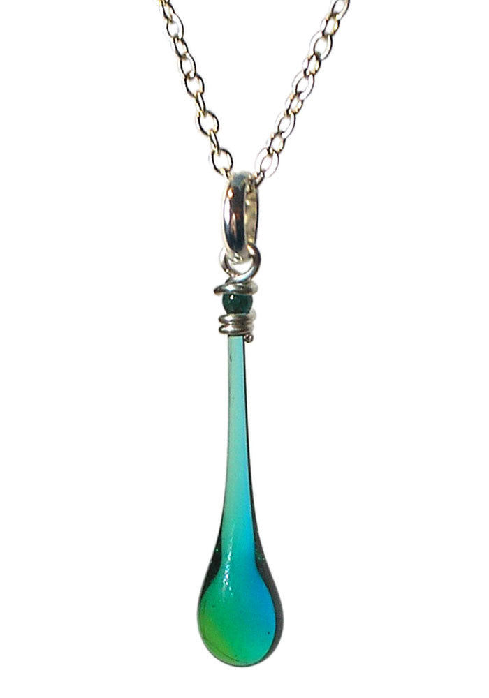 - Droplet length: 3/4" - 1 1/4" (1.9 - 3.2 cm), hanging from an 18", 20", or 24" chain of recycled sterling silver