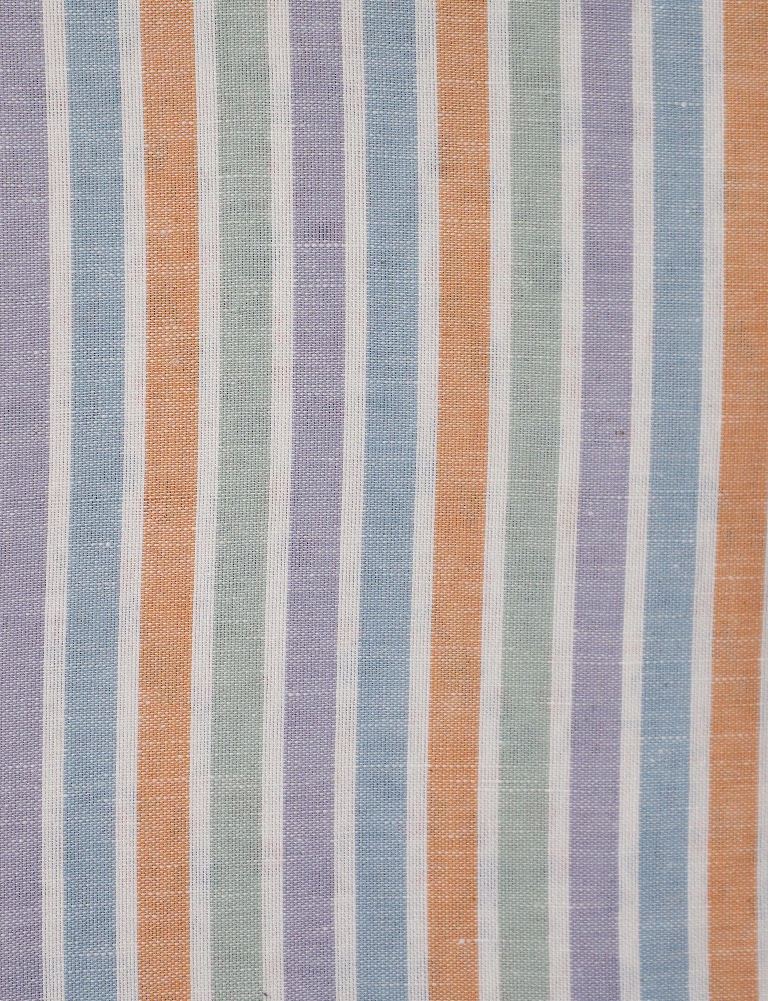 Elevate your daily style with our Maurepas Button Dress. This striped button dress is made with handwoven fabric and features cap sleeves and buttons down the front. Our easy-to-open striped button dress is great for nursing or pumping mothers. The handwoven stripes on this dress are purple, blue, orange and green.