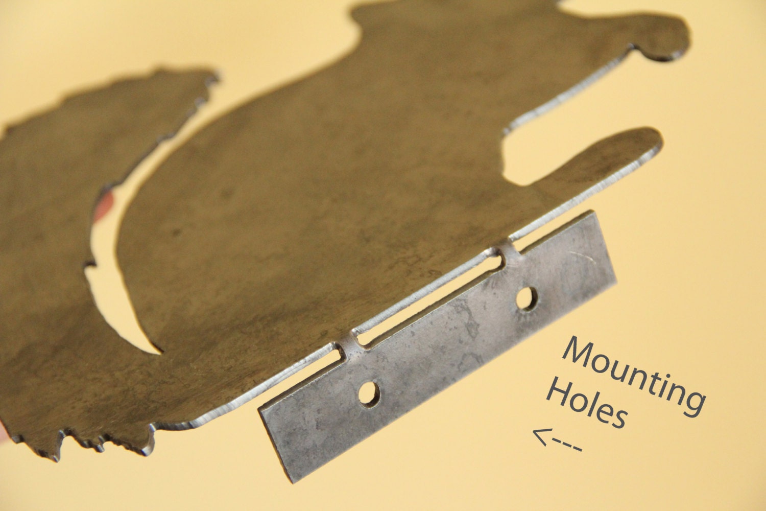 Your item is plasma cut using 16 gauge steel, approximately the thickness of a quarter coin, for a durable yet lightweight piece. The metal is left untreated to maintain its natural finish so it will slowly rust over time outdoors. We hope you enjoy watching this natural process.