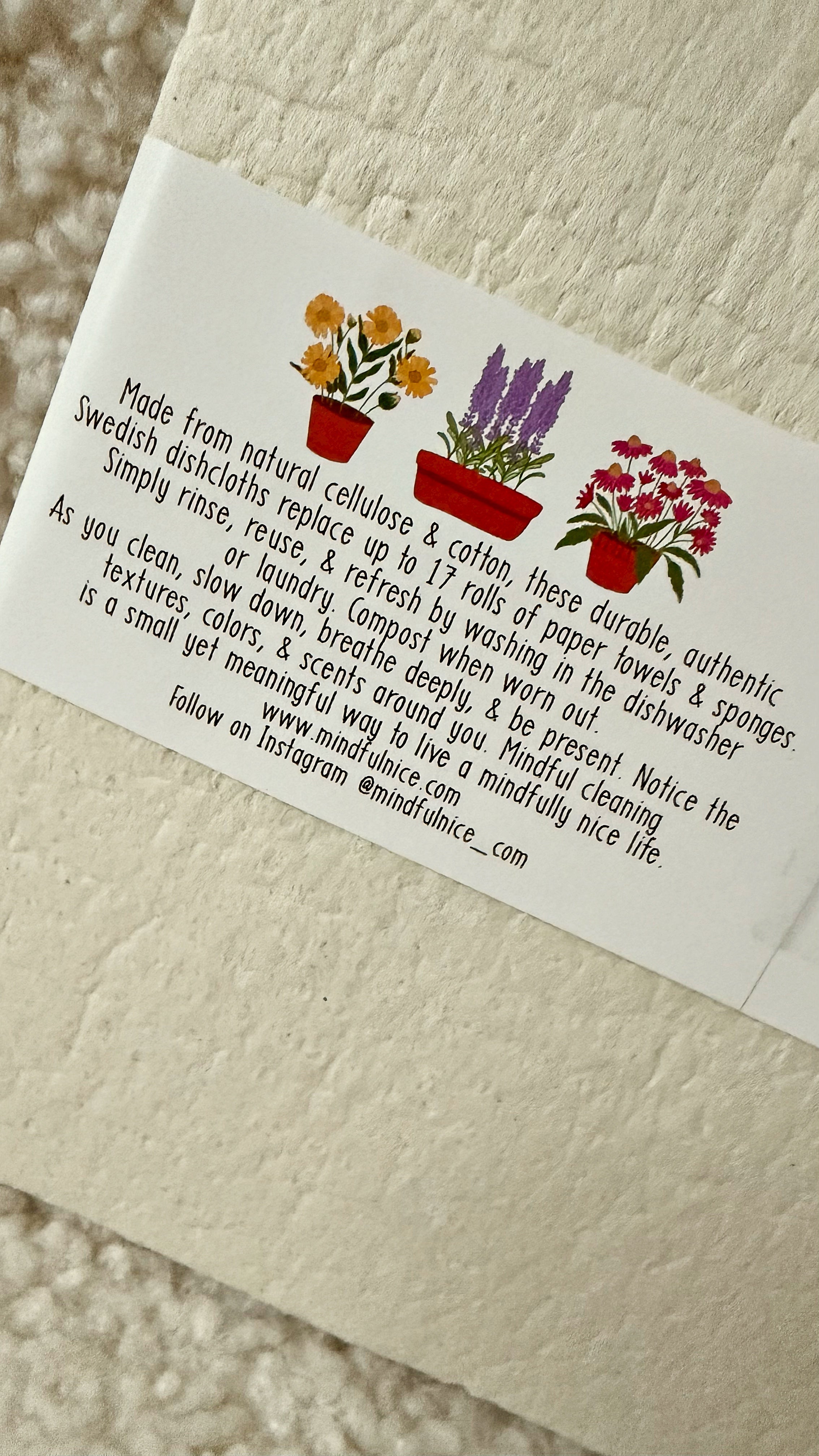 Mindful Cleaning is an easy way to bring mindfulness into your life. With these sustainable, eco-friendly authentic Swedish dishcloths, you can also mindfully care for the earth. Swedish dishcloths are made to absorb like a sponge, but wipe like a cloth. They are non-abrasive & will not scratch surfaces. Each cloth will replace up to 17 rolls of paper towels and will last 6 months or more with regular use. They are easy to clean, biodegradable, & compostable!