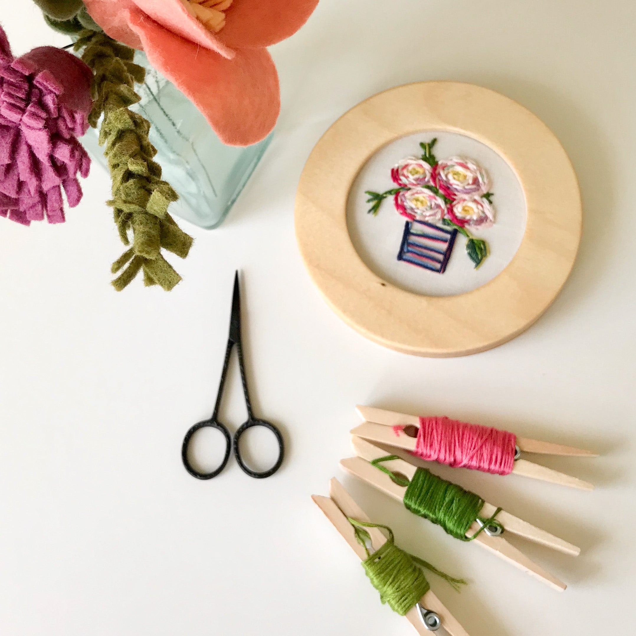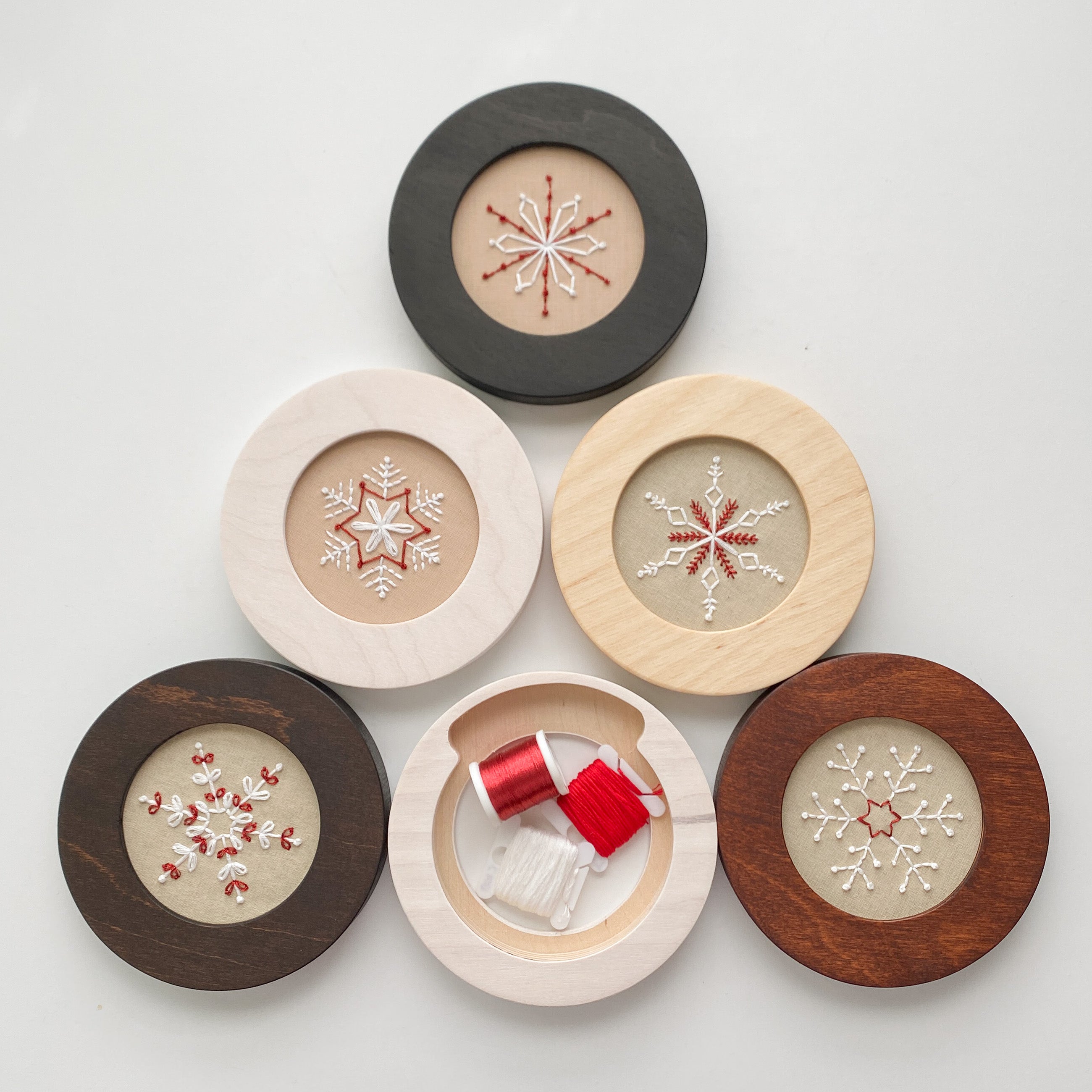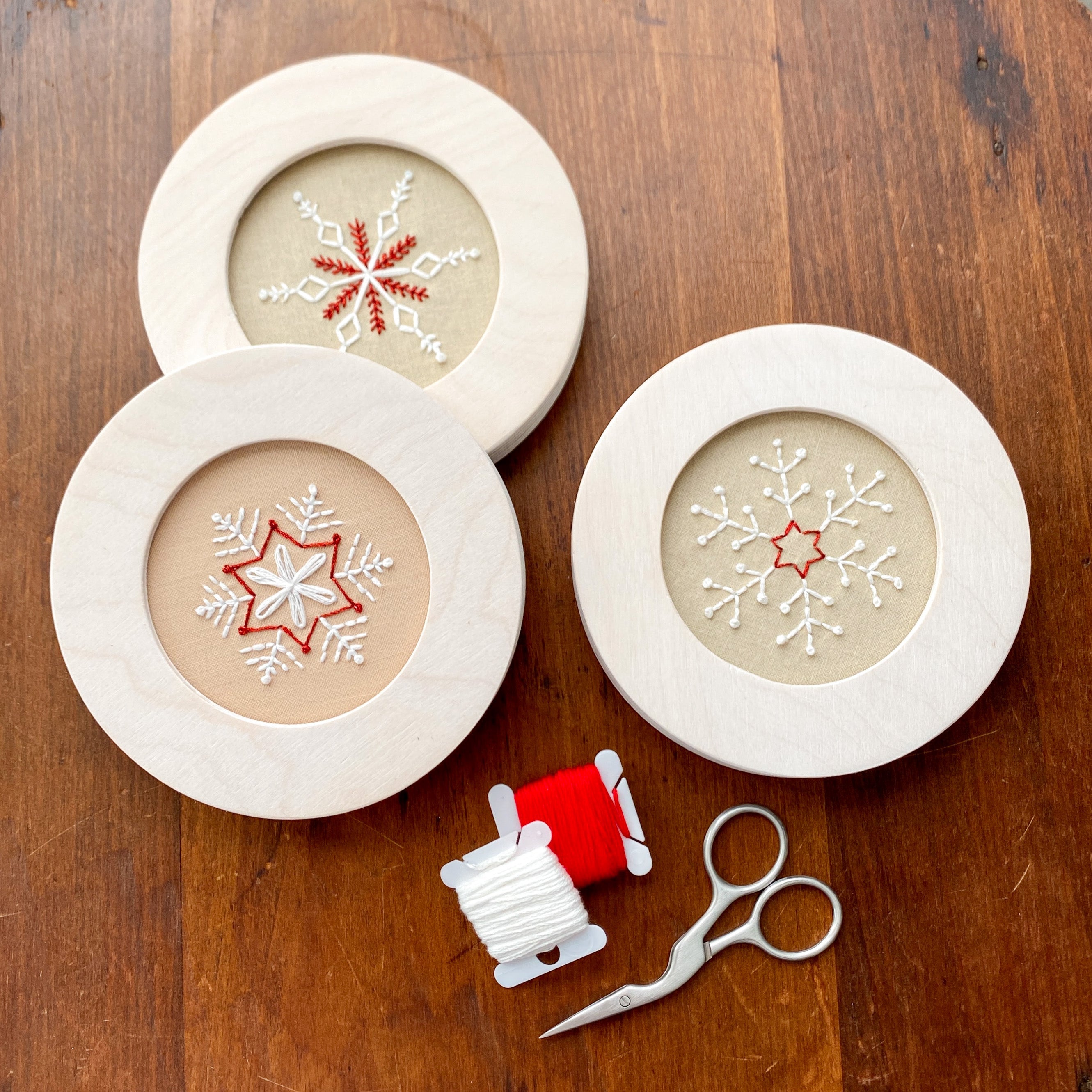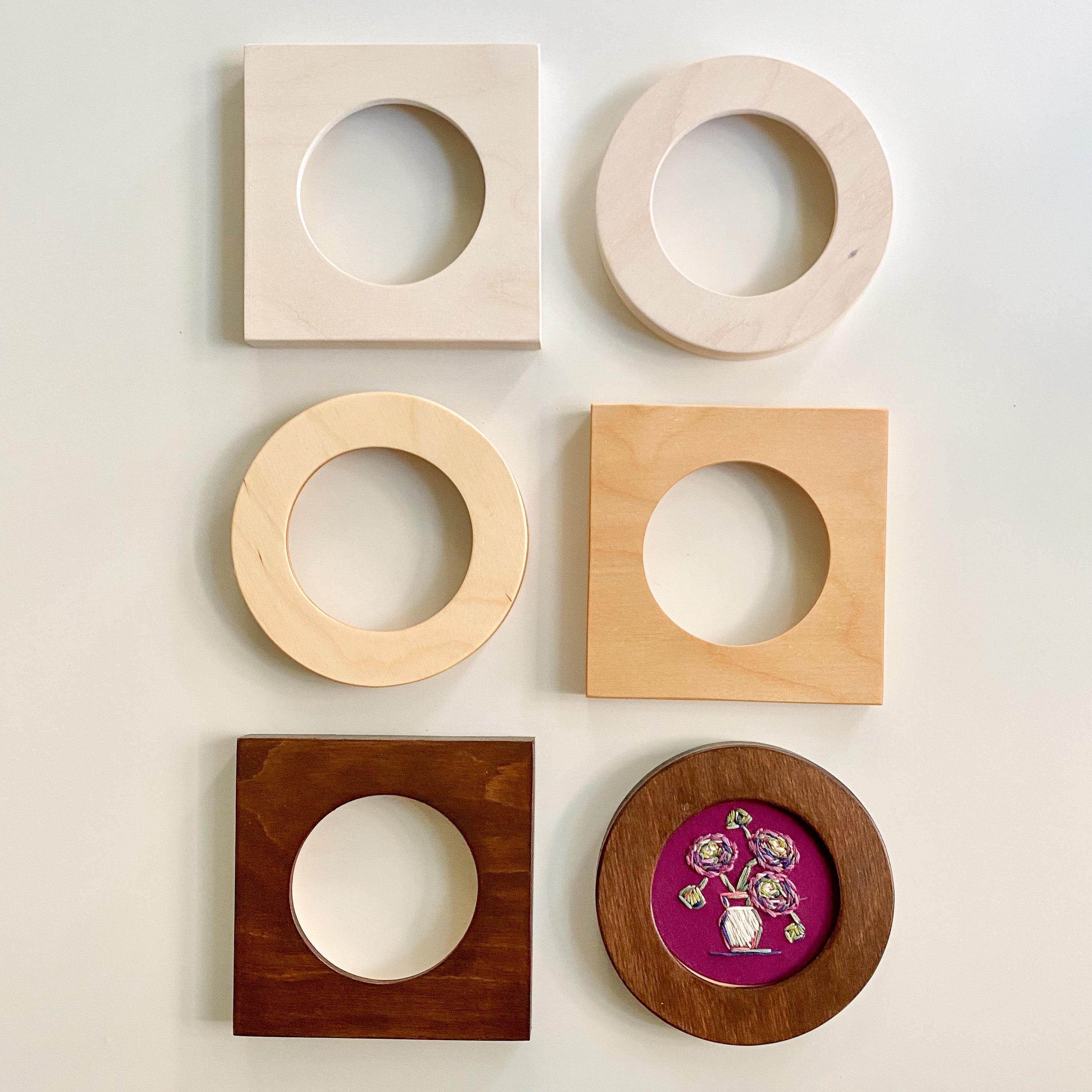 Face it. A 3" hoop is the "two-bite brownie" version of a stitching project. Done in a weekend, or even a "sitting" (unless the movie is really good.) Grab a little hoop and let your needle fly. These frames will give it an instant upgrade.