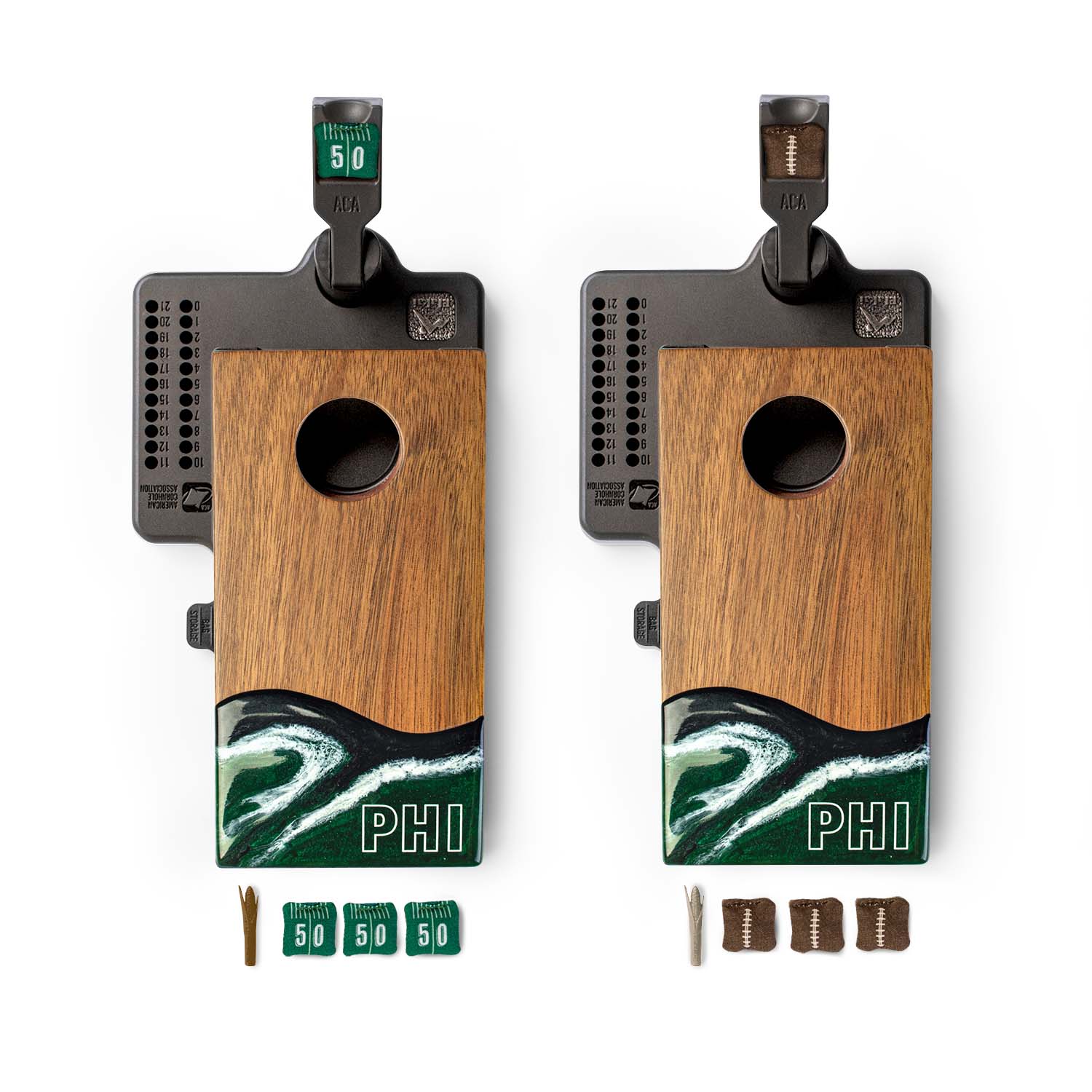 - Built-in scorekeepers with corn-shaped pins