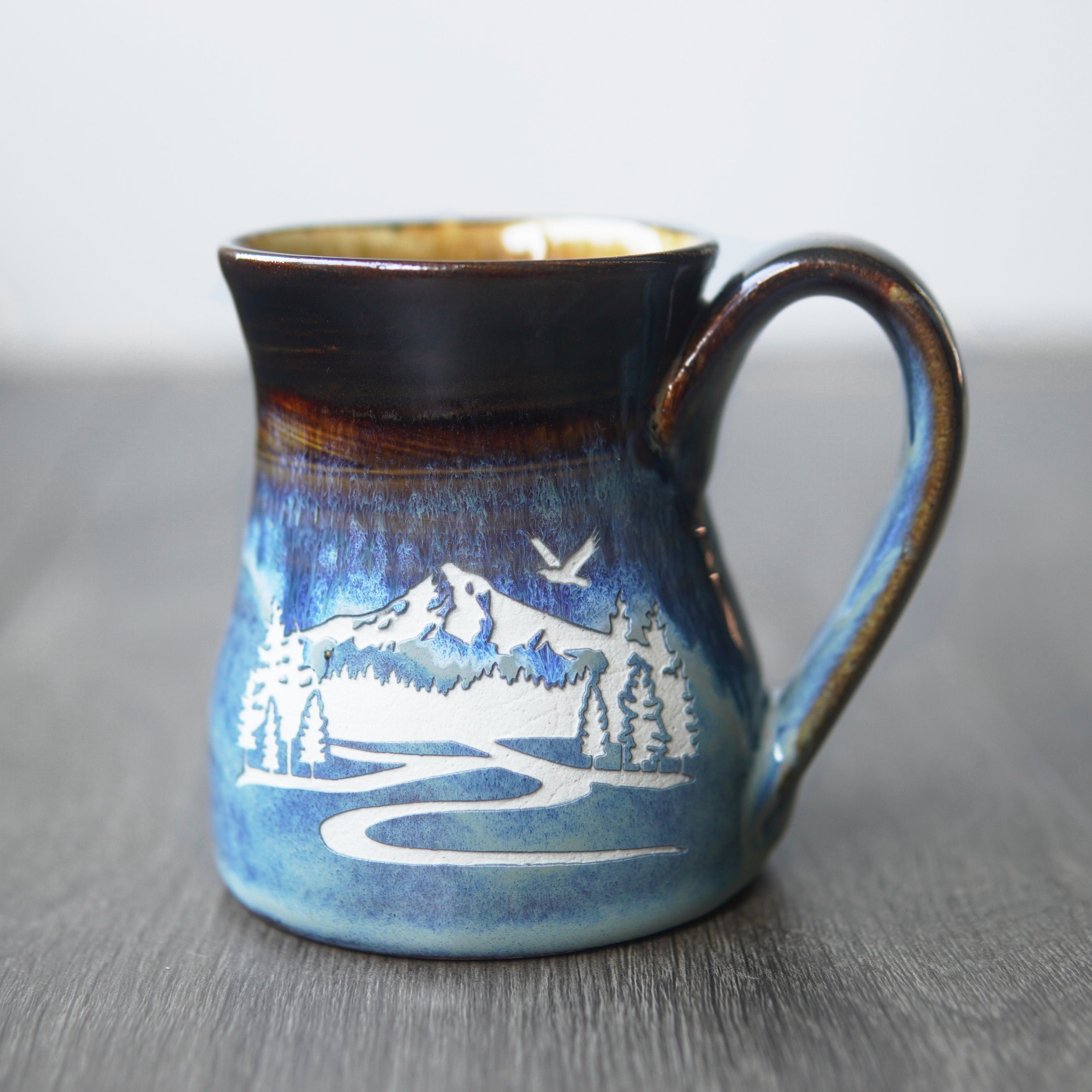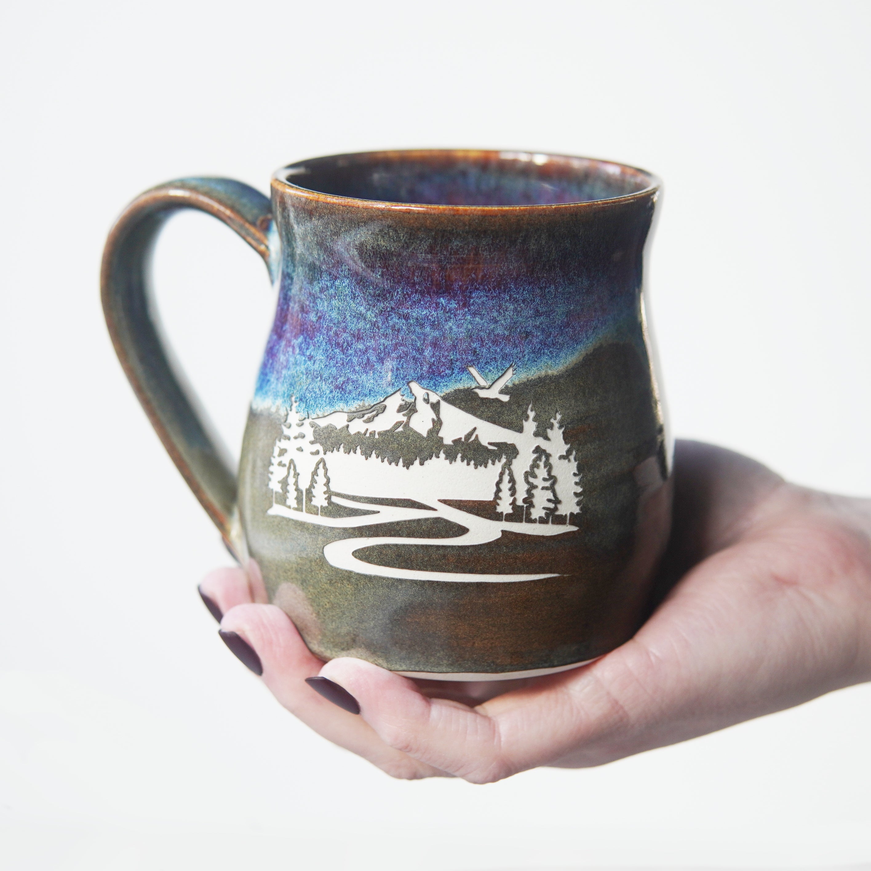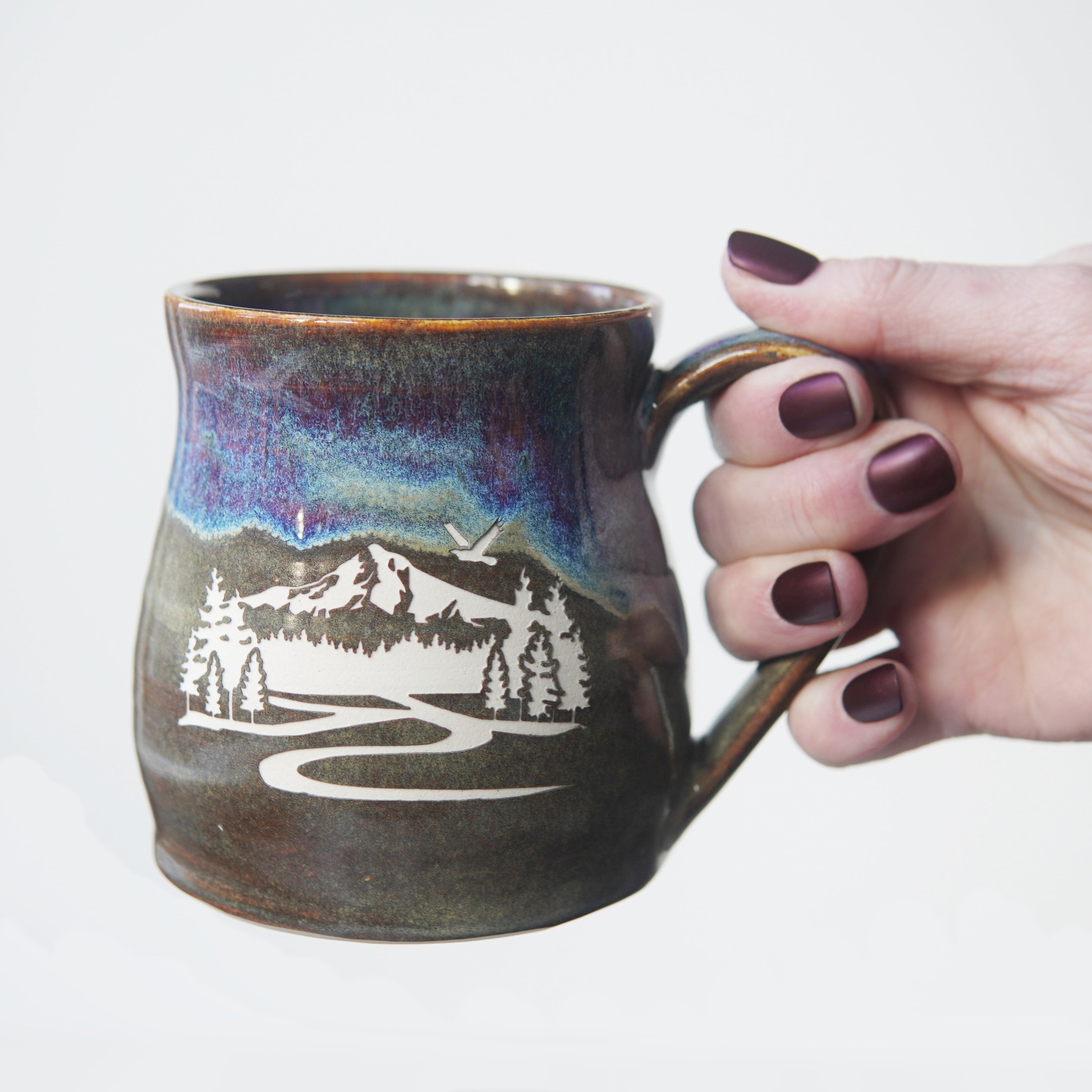Sip your morning brew from our newest Mountain Mug, part of our Hearth Collection of handmade pottery. This quirky mug features our iconic Mt Hood design, perfect for showcasing your love for the Pacific Northwest. Elevate your coffee game with this unique piece!