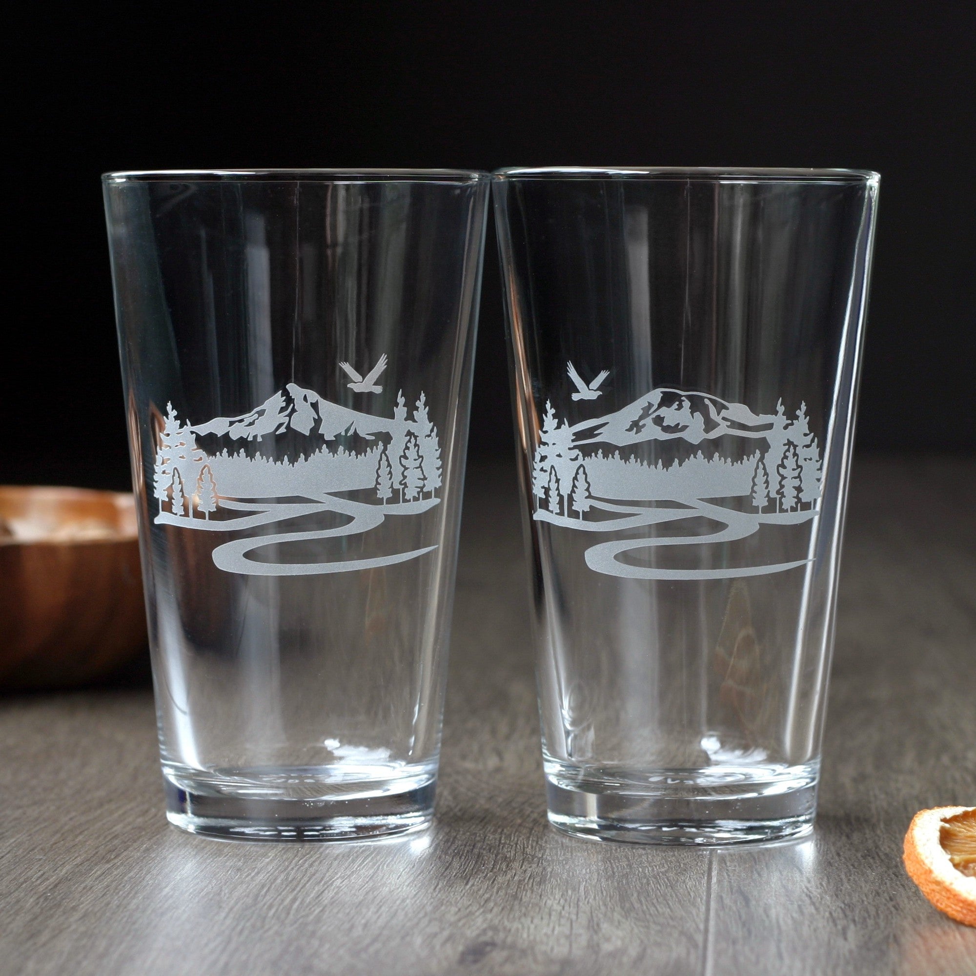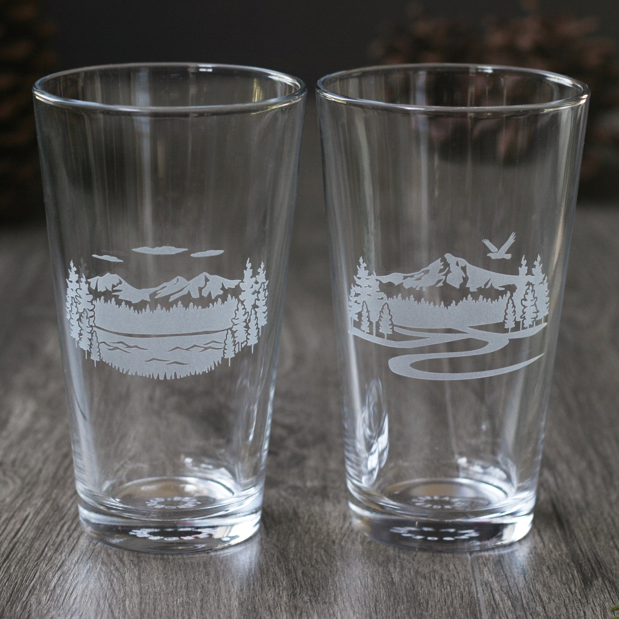 Mountain Pint Pint Glass - etched glassware