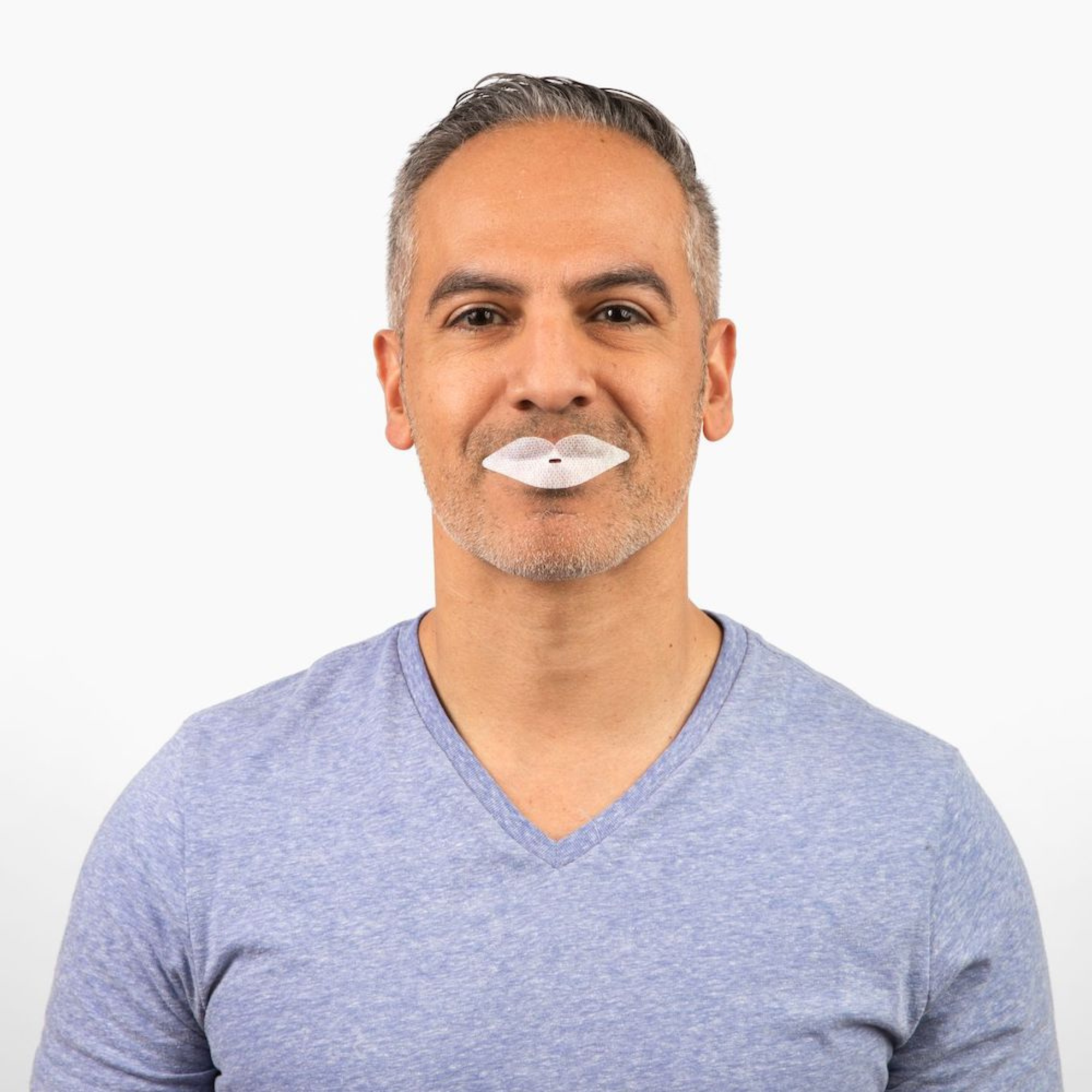 - Mouth tape works well with facial hair because it sits on the lips, below the hairline. You can also flip it upside down so the curved part is below a mustache.