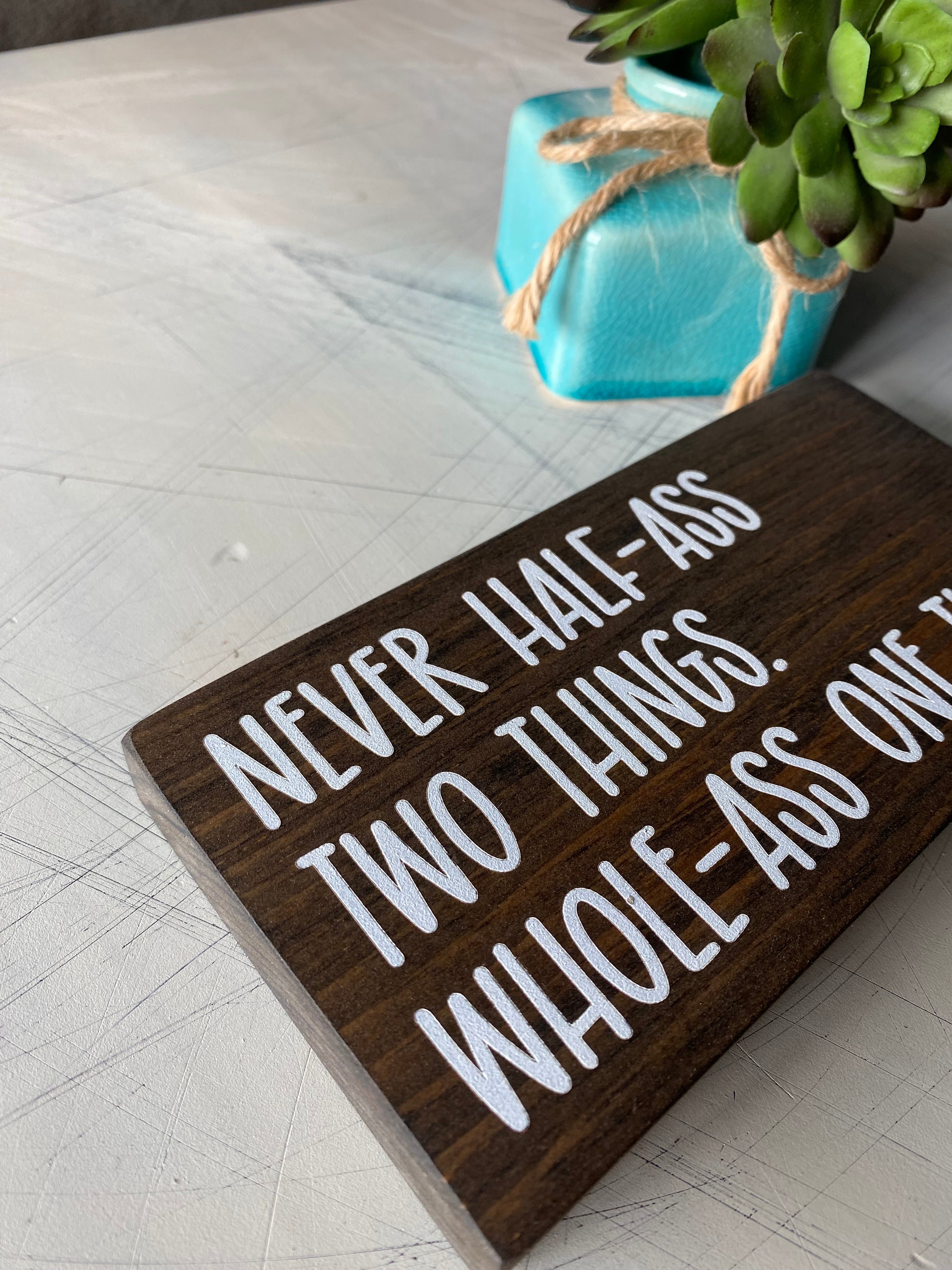 This handmade wood sign is the perfect reminder of Ron Swanson's sage advice: "never half-ass two things - whole-ass one thing!" Display it and never forget to give your best.