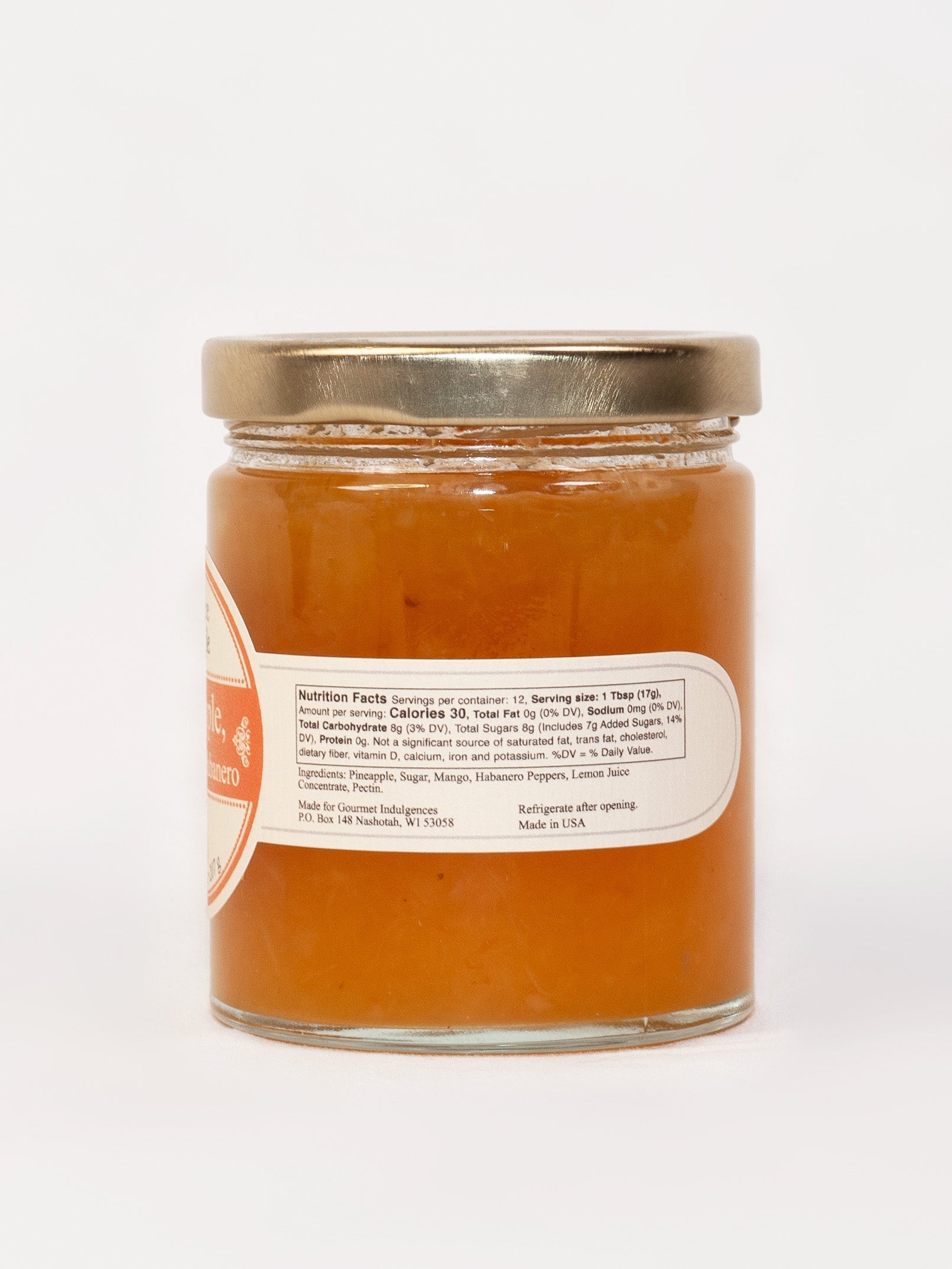 Ingredients: Pineapple, Sugar, Mango, Habanero Peppers, Lemon Juice Concentrate, Pectin.