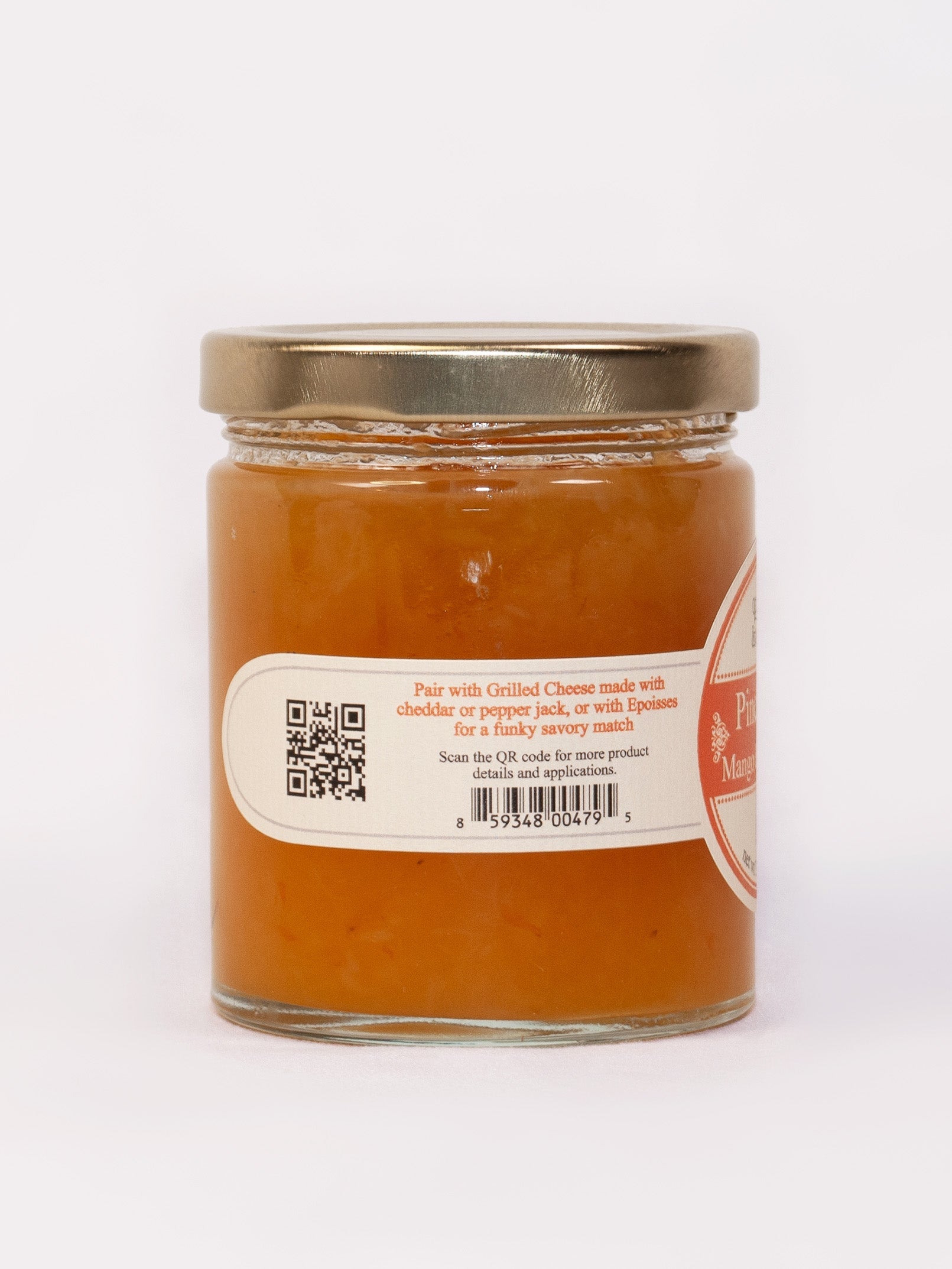 Sweet meets heat in this bold, tropical conserve. Juicy, sun-ripened mangoes are simmered slowly to preserve their natural sweetness, then paired with just the right touch of fiery habanero pepper for a warm, lingering heat. The result is a vibrant, well-balanced spread that’s as versatile as it is flavorful. Perfect with soft cheeses, grilled meats, or stirred into dressings and marinades for a spicy-sweet kick. Small-batch crafted with real fruit and no shortcuts— just big flavor in every spoonful.