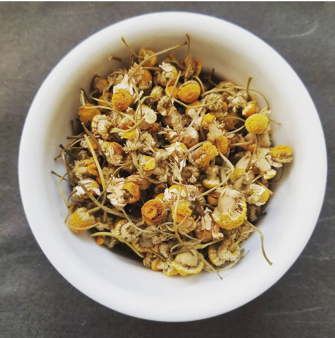 Chamomile can be made into a pleasant aromatic tea which is slightly bitter but with a fruity flavor. It is often sipped for relief of health problems ranging from toothache to nervousness. Chamomile has also been noted as beneficial for soothing headaches and is a natural relaxing herb known to assist the restless and those suffering from insomnia. In many circles Chamomile is called nighty night tea or sleepy tea on account of its natural properties, which promote restfulness and drowsiness. It is also known to assist digestive disorders by settling the stomach and calming the nerves. Chamomile is derived from ancient Greek and translates as "Ground Apple" in reference to the fruity aroma. Like many teas and herbs chamomile should be consumed without the addition of milk but this does not preclude additives such as honey, lime, lemon, cinnamon, etc.. One of the fun things to do with a widely used herb like chamomile is to make your own blend.