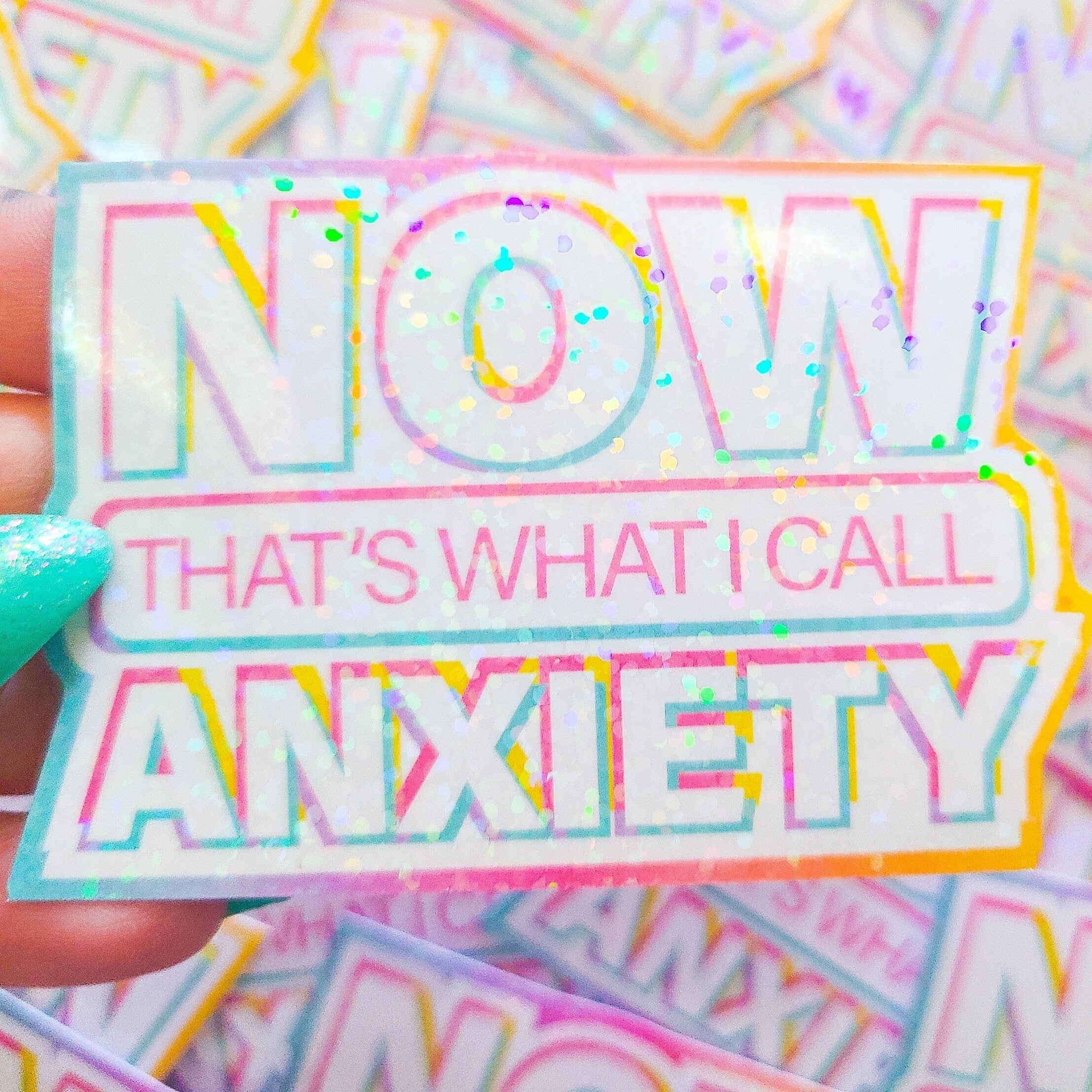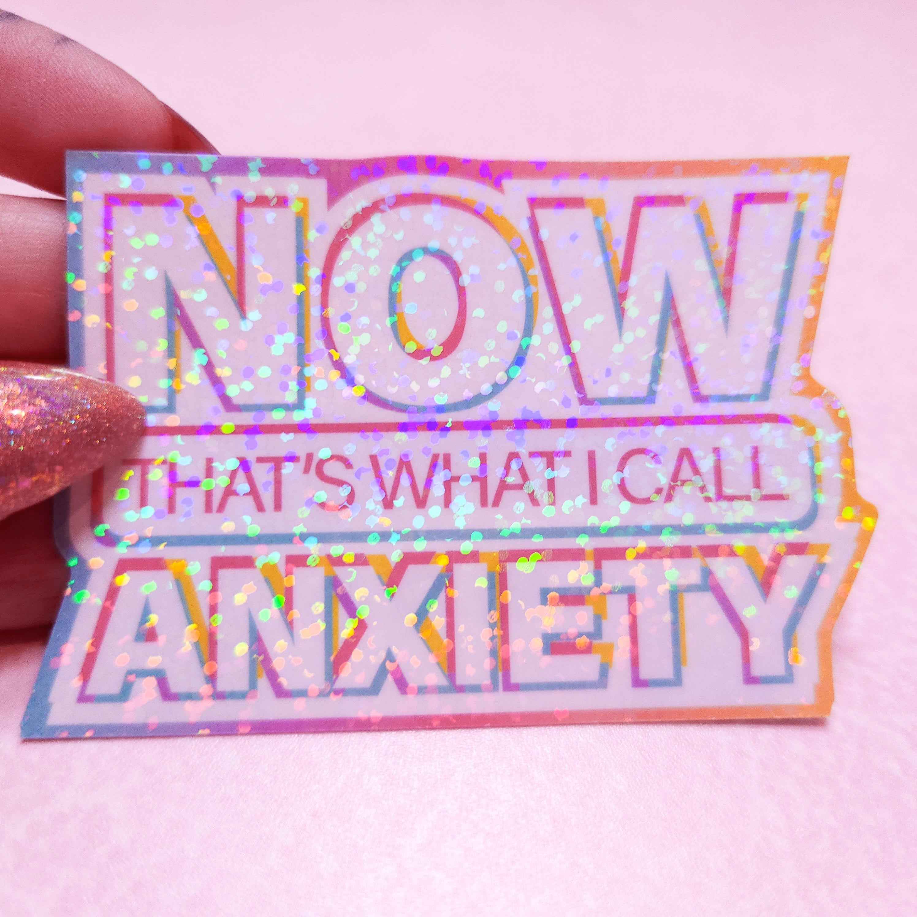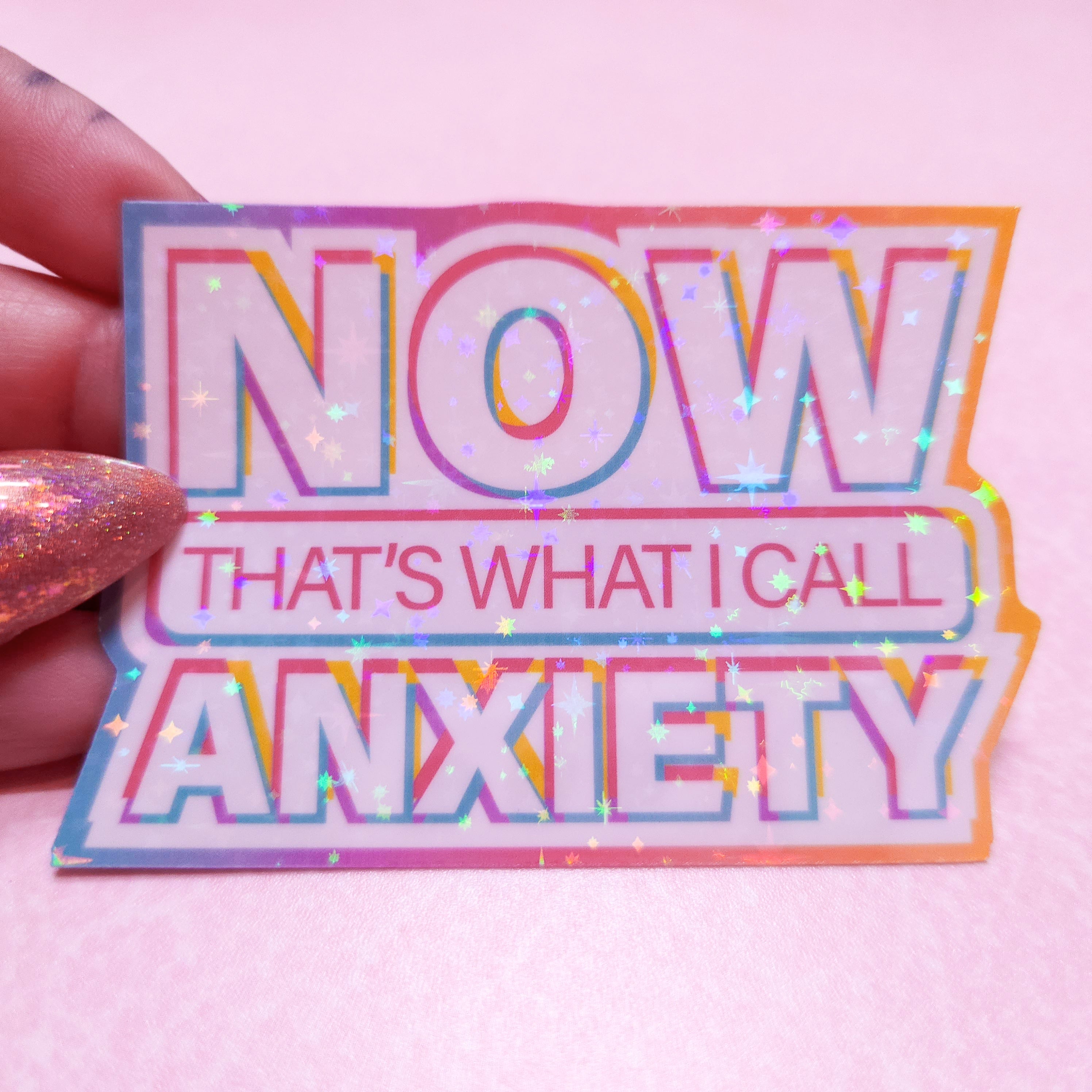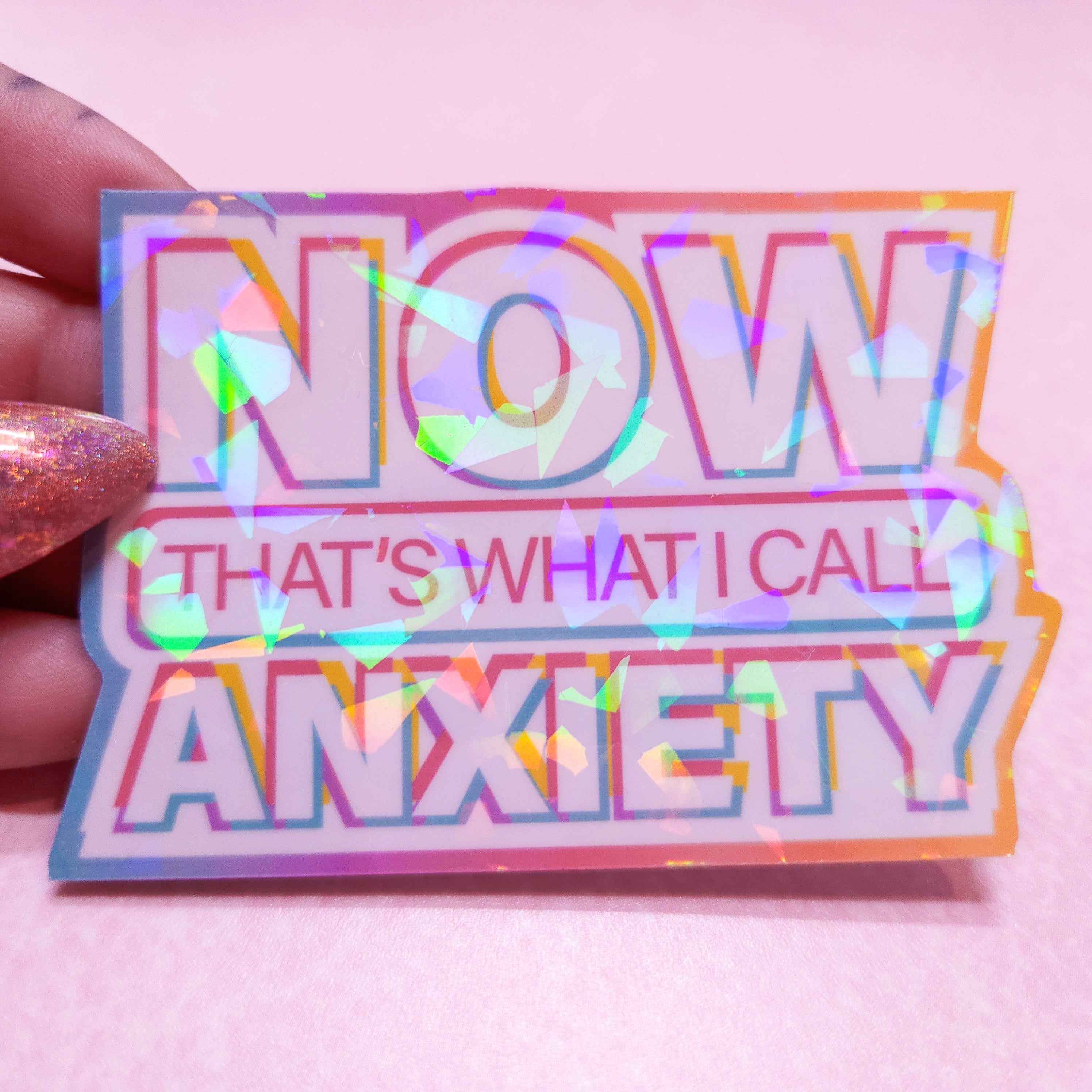 NOW That's What I Call Anxiety - Holographic Sticker, 3x2.25 in.