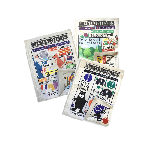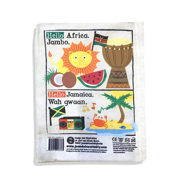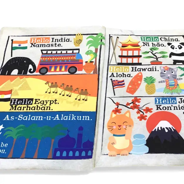 Extra, extra, read all about it in the Nursery Times, a 6 page crinkle book designed to look and feel like a newspaper. Say hello to new friends with 18 adorable, brightly illustrated greetings in different languages from around the world.