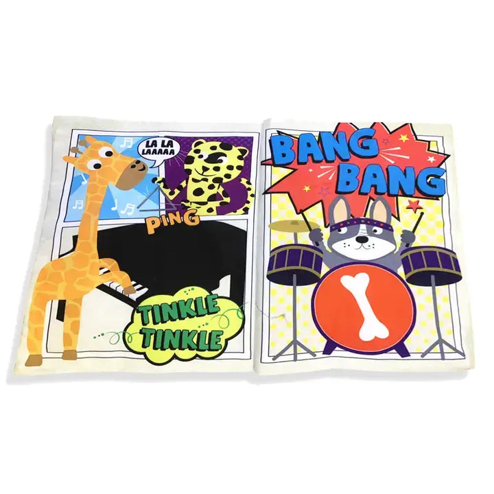 Extra, extra, read all about it in the Nursery Times, a crinkle book designed to look and feel like a newspaper comic. Learn all about musical instruments and their sounds in a traditional comic layout with flashes and speech bubbles. A great sensory toy and unique gift.