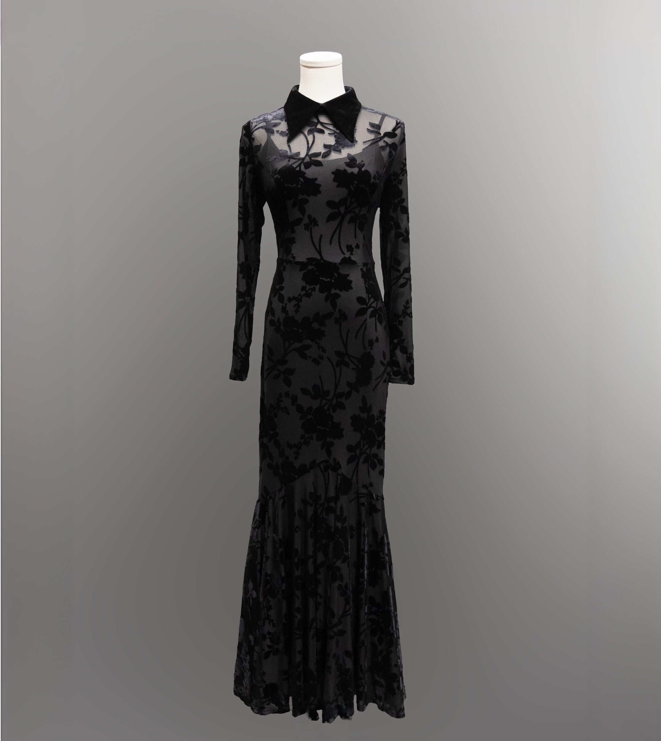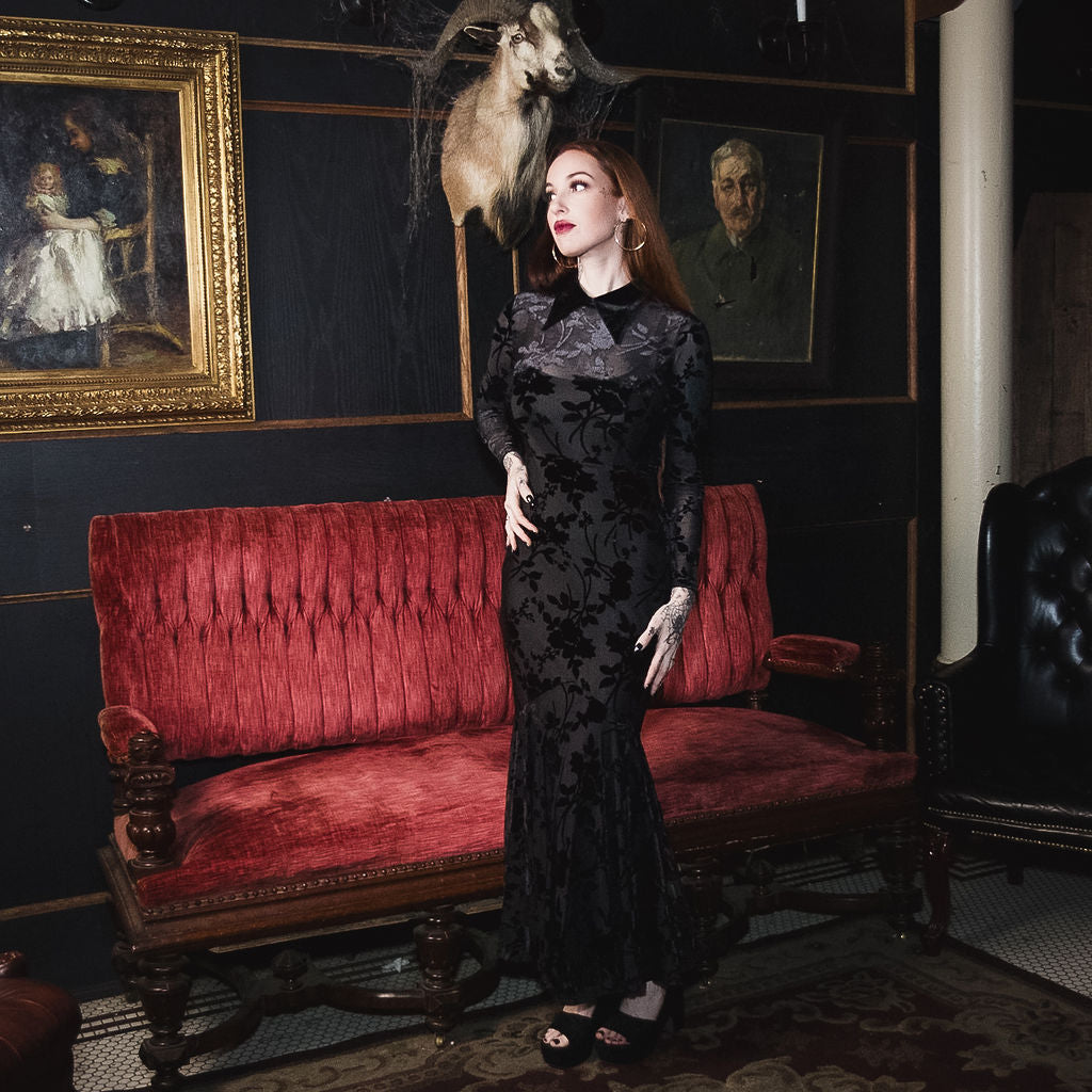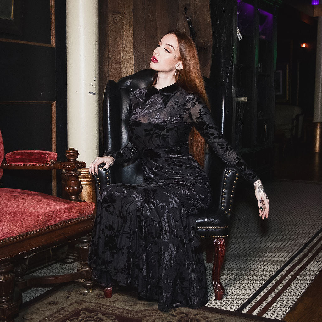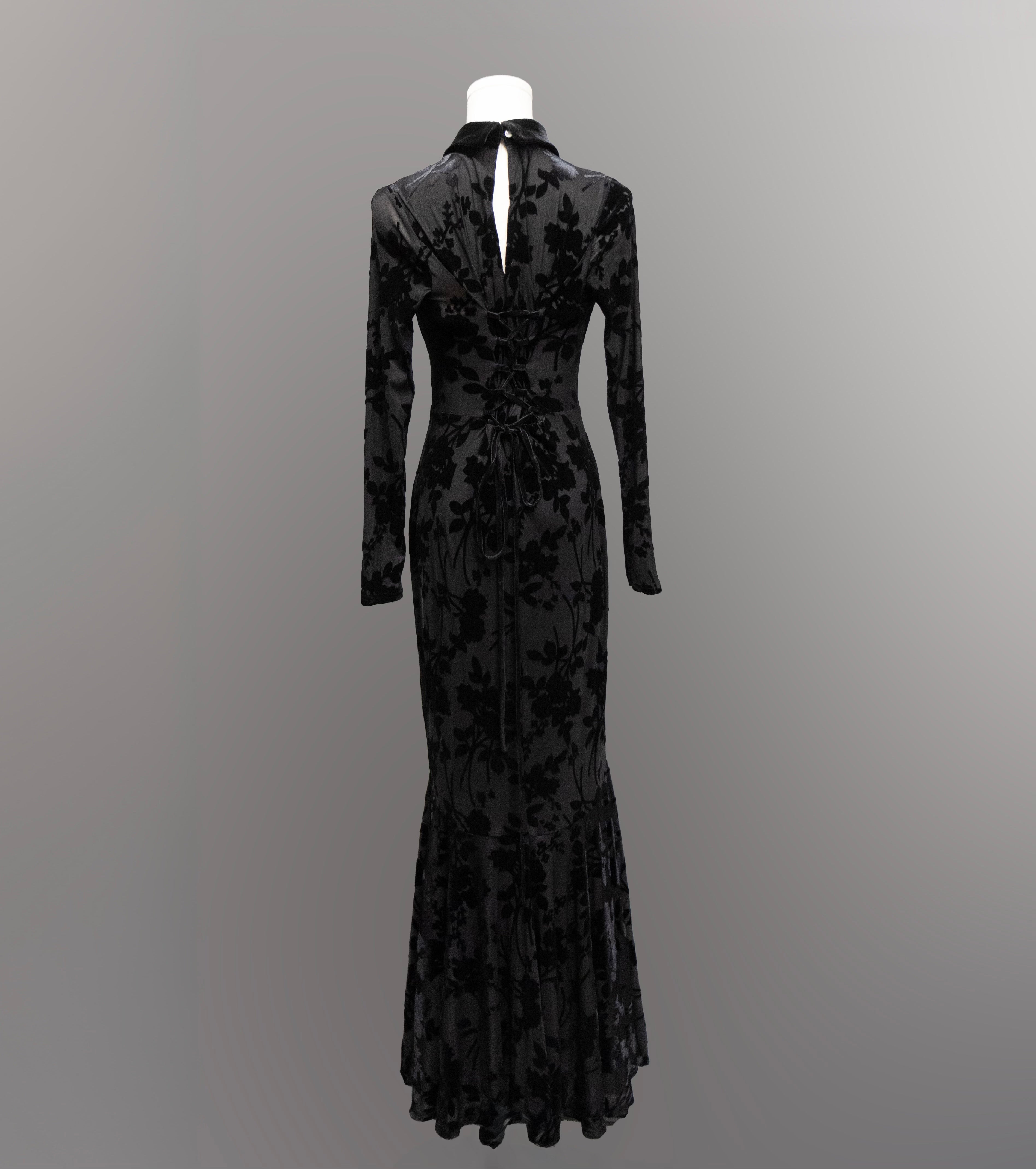 Ophelia - Velvet Flocked Lace Up Maxi Mermaid Dress