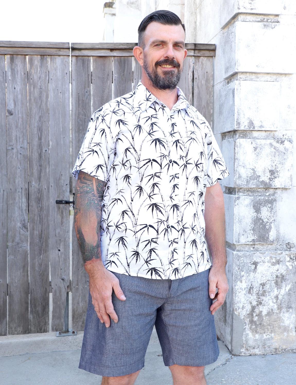 Constructed from 100% organic woven cotton, this palm tree button down shirt not only ensures comfort but also embraces sustainability with its hand screen printed design using organic dyes. Whether you're heading to the beach or a laid-back evening, this shirt effortlessly combines style and eco-conscious craftsmanship.