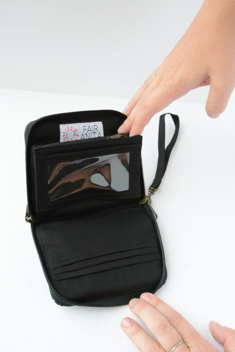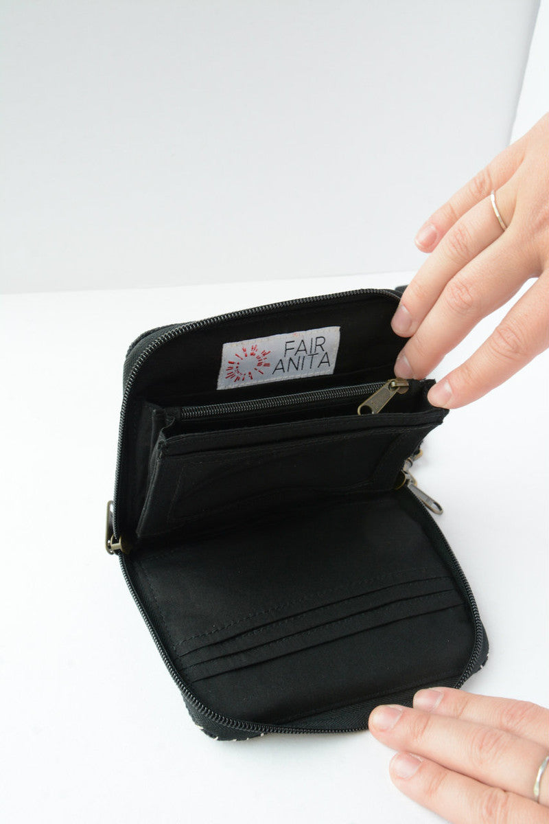 This little wallet is so practical and cute! Perfect for stowing away your necessities, this black and white patterned zip clutch is perfect for everyday use.