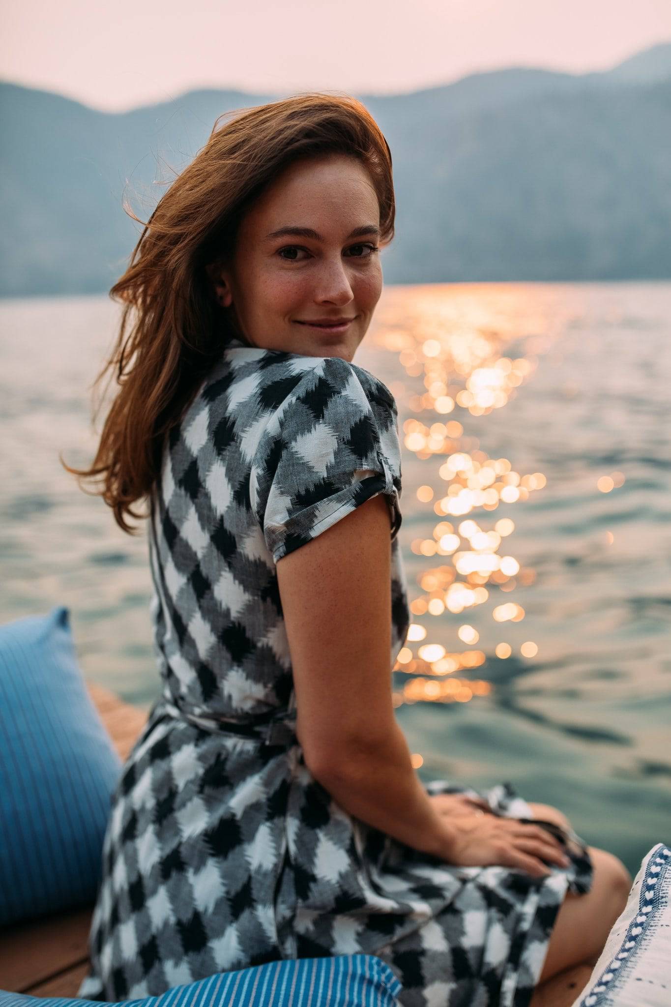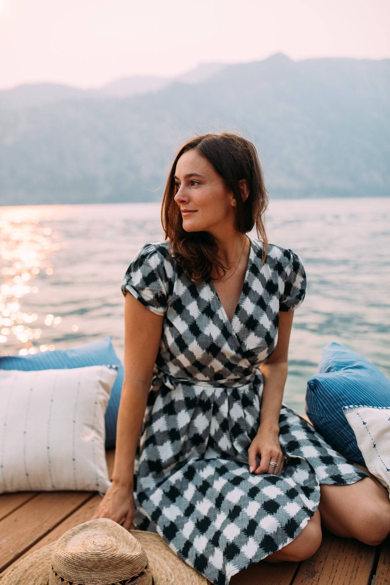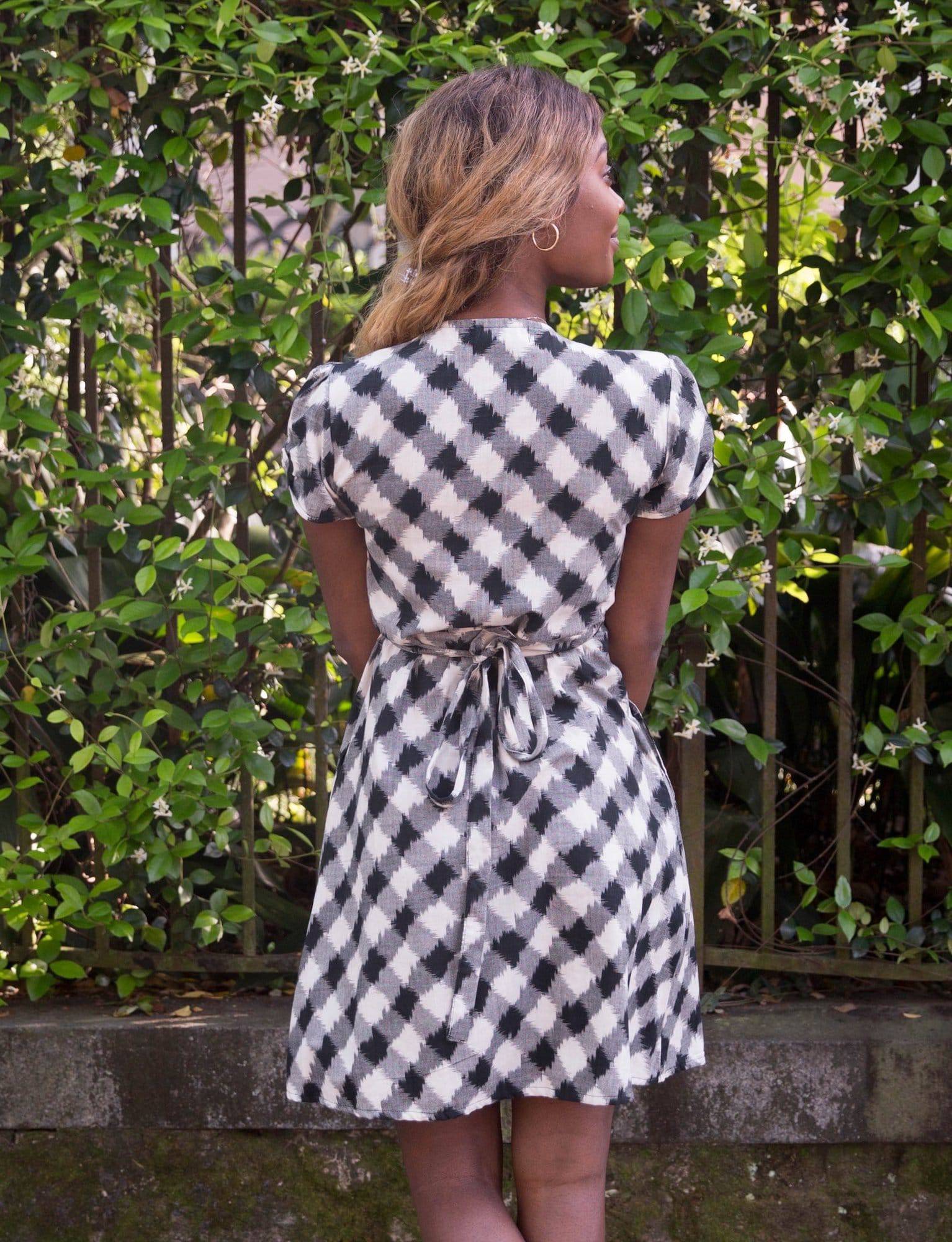 Pack your shawl and enjoy the great outdoors in our short sleeve Picnic Plaid Wrap Dress. Slimming and flattering on all figures, this dress offers a playful black and white print, pleats in the front, a hook 'n eye closure at the bust for added comfort and convenience, and pockets. Pop the champagne and pass the cheese!