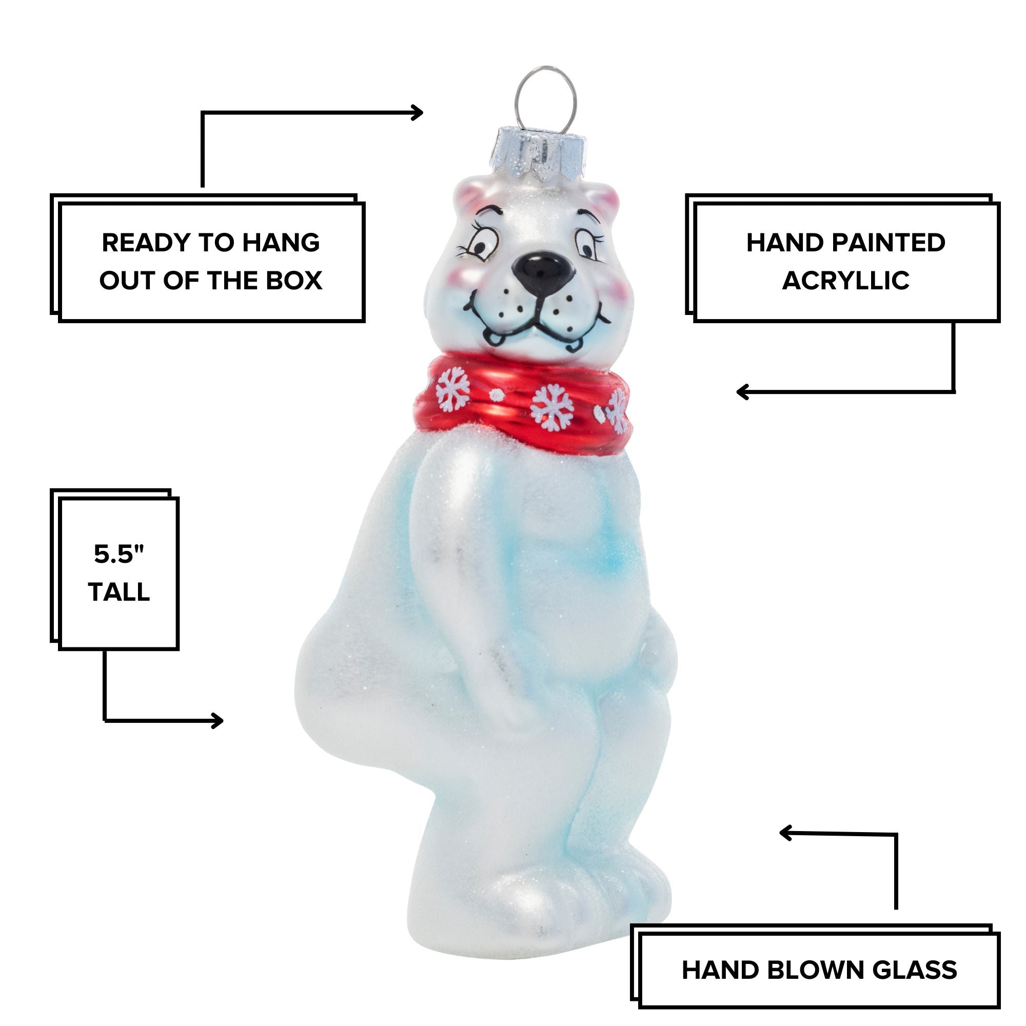 - Each Ornament is hand blown by a glassblower