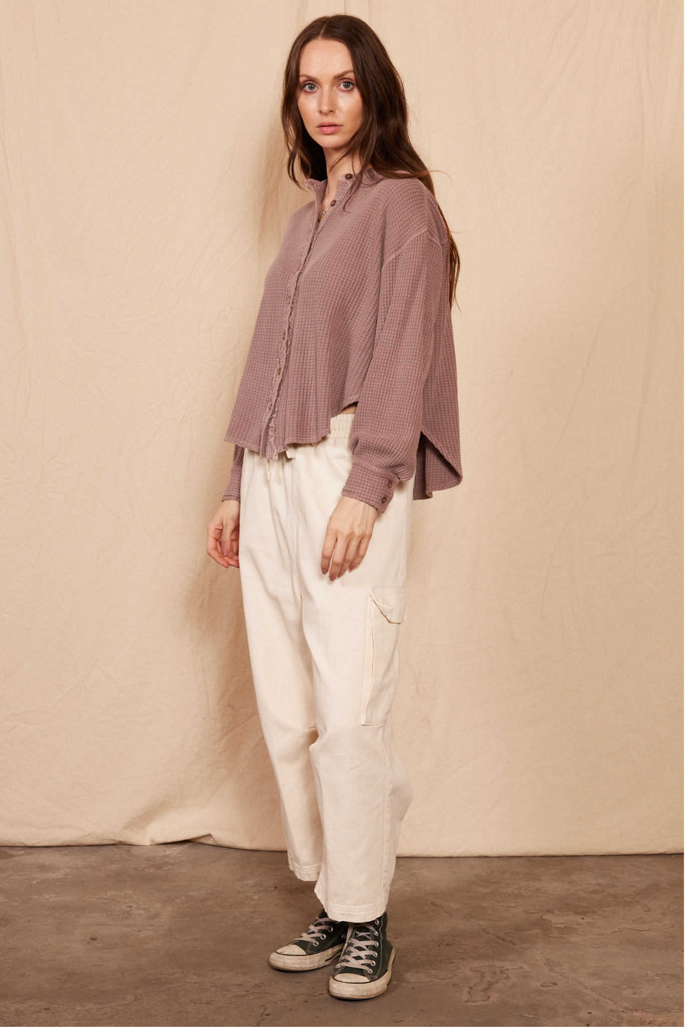 Embrace the epitome of sustainable luxury with our Quinn Waffle Top. Made from 98% hemp and 2% spandex, this top offers unparalleled comfort with a relaxed, chic silhouette. The breathable fabric, coupled with a unique button-down design and subtle asymmetry, speaks to the fashion-forward, eco-conscious individual. Ethically crafted and upcycled, this piece is perfect for those who prioritize both style and sustainability.