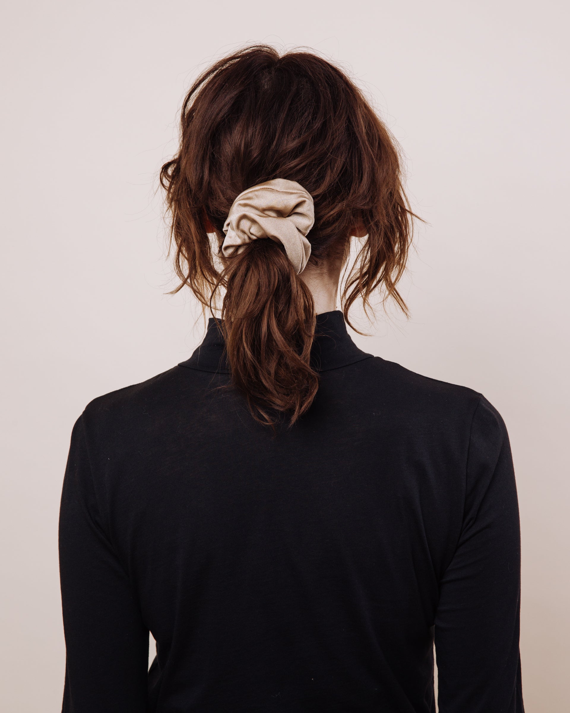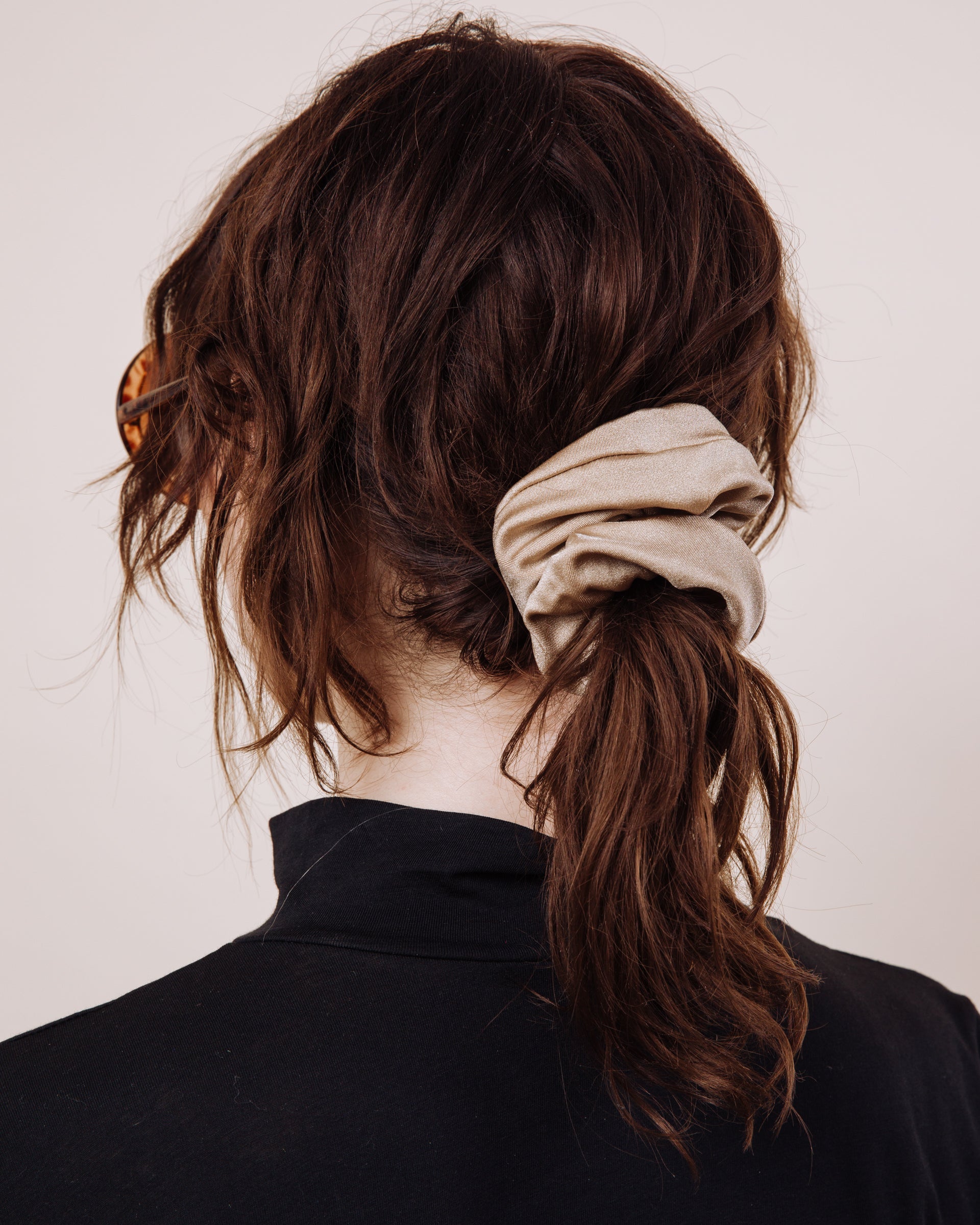 You'll be the talk of the town in this glitzy scrunchie! This band just the right amount of shimmer!