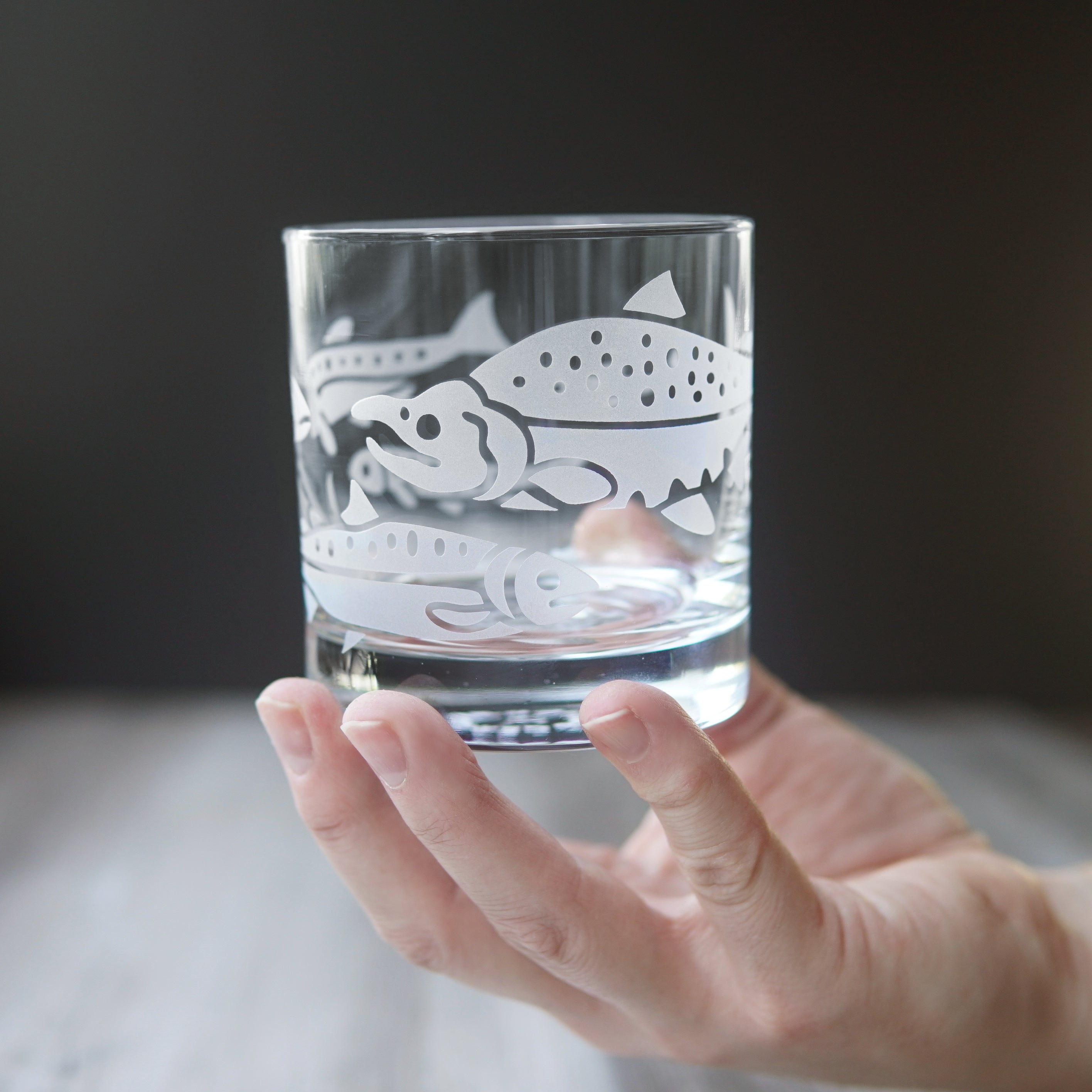 Salmon Lowball Glass - etched fish glassware