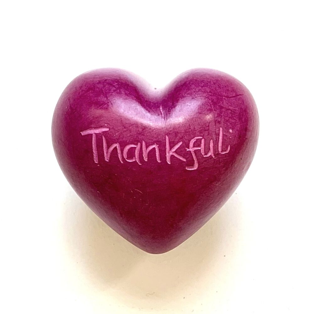 Each heart is hand-carved from soft kisii soapstone, then etched with inspiring words. Expect slight color differences from ones in photos as artisans hand-dye with non-toxic dyes and shades of pink vary.